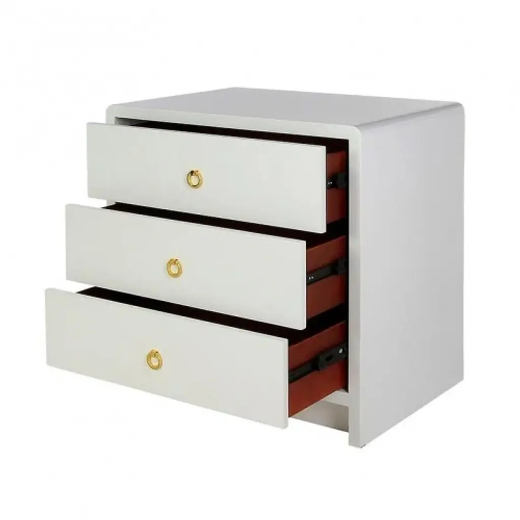 Bring ample storage to your living room or bedroom with this storage side table. Made from birch wood, three spacious drawers keep your items wonderfully organized. Finish: White Painted Lacquer Material: Birchwood 29"W x 20"D x 28"H 58 lbs Free Shipping in the U.S.