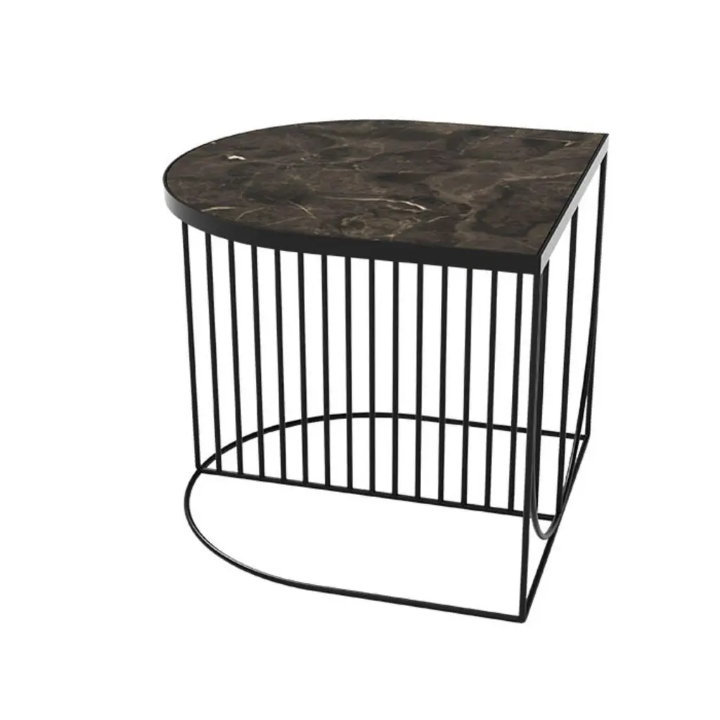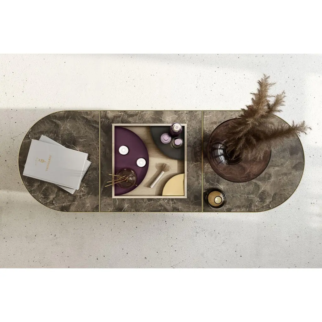 Brown marble and gold steel contemporary side table.Dimensions: L 50 x W 50 x H 44.3 cmMaterials: Marble and steel This series consists of three different designs that you can combine in many different ways. The table tops come in two different colored luxurious marble and have two different colored base frames. This makes them highly versatile as they can fit in any room and there are endless combination possibilities.The tables can stand alone as side or coffee tables, as well as night stands up against the wall. Combine with one or two more - and you have the perfect sofa table, where you can have room for magazines. The materials are timeless and yet iconic and the tables will make sure to turn heads where ever you place them.