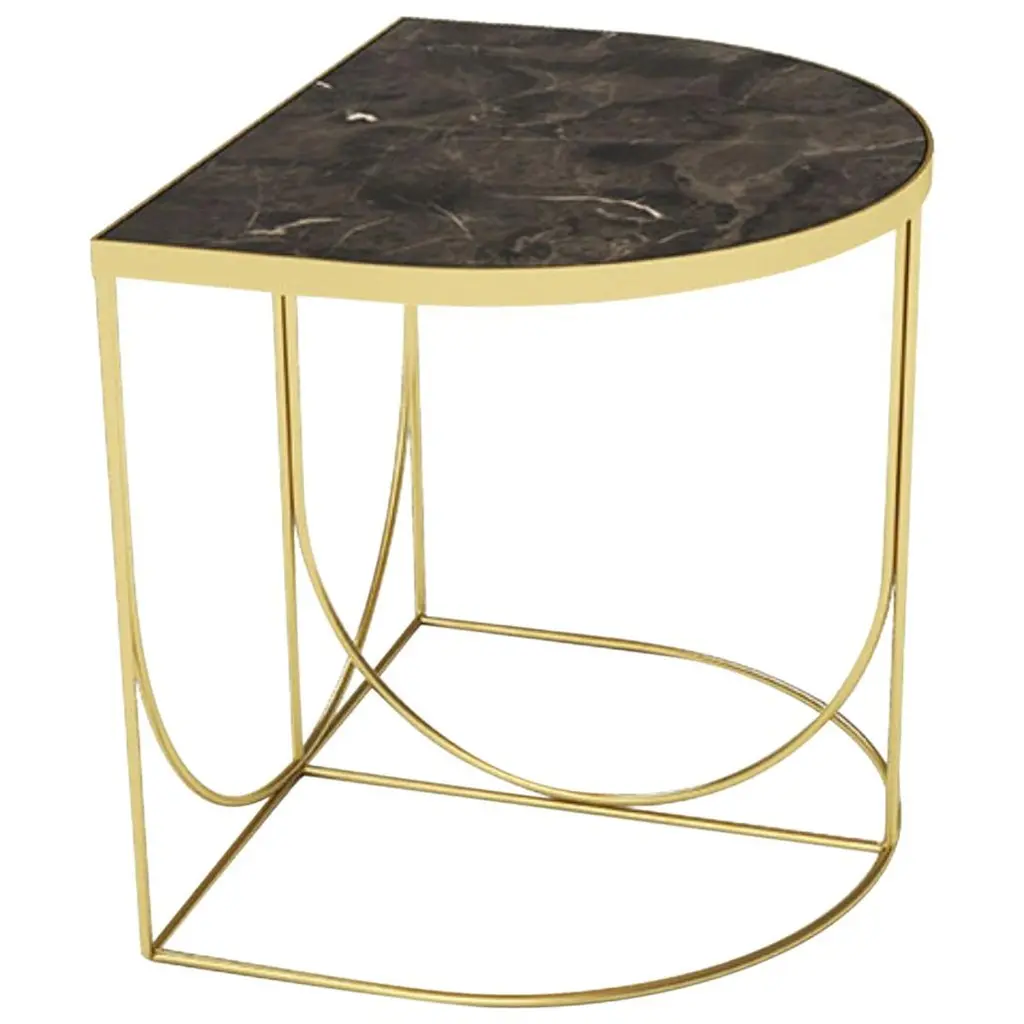 Brown Marble And Gold Steel Side Table