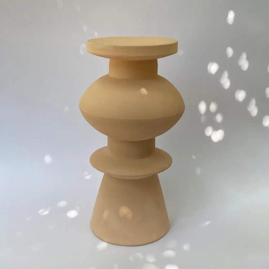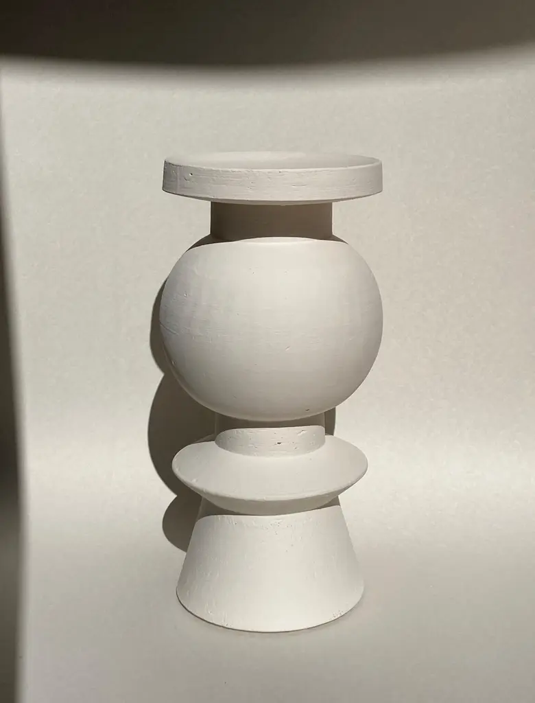 Brown Union side table by Lea GinacUnique Piece. Dimensions: diameter 40 x height 47 cm Materials: Brown Terracotta Chamotte clay. Handmade Ceramic. Technique: Hand-modeling.Available in three other designs. Also available in white or Terracotta. This stool is designed in the same spirit as the union side table. The choice of material makes this room warm thanks to the earth. In addition, its size allows it to adapt to several spaces: near a bed, a sofa, or simply as a storage surface.Daughter of antiques and passionate about design, Léa Ginac decided to launch her own brand with a strong bias: to mix the old and the contemporary through timeless pieces with sculptural dimensions. In her creative process, her inspiration comes mainly from the universe in which she grew up, objects, and ancient art. The Union Side Table comes in 3 different shapes and 4 colors. Handmade in chamotte clay in Italy.Lea Ginac is the daughter of two antique dealers with a passion for interior design, Léa built her personal brand with a clear vision in mind: blending ancient and contemporary aesthetics through timeless pieces with sculptural dimensions. A versatile artist, she’s designed a line of both street and home furniture, along with various decorative objects, light fixtures, and even dinnerware, all handcrafted in France and Italy. Nurtured by antiquity and design, LEA GINAC offers a range of furniture, objects, and lights combining old and modern to suit all sorts of interior designing. She uses marble and slate as noble, historical, and timeless materials. Symmetry, luminosity, and curves are the key impulses of her creativity. Off the wall and poetical, LEA GINAC invites the audience to enter her artistic world filled with history and emotions.