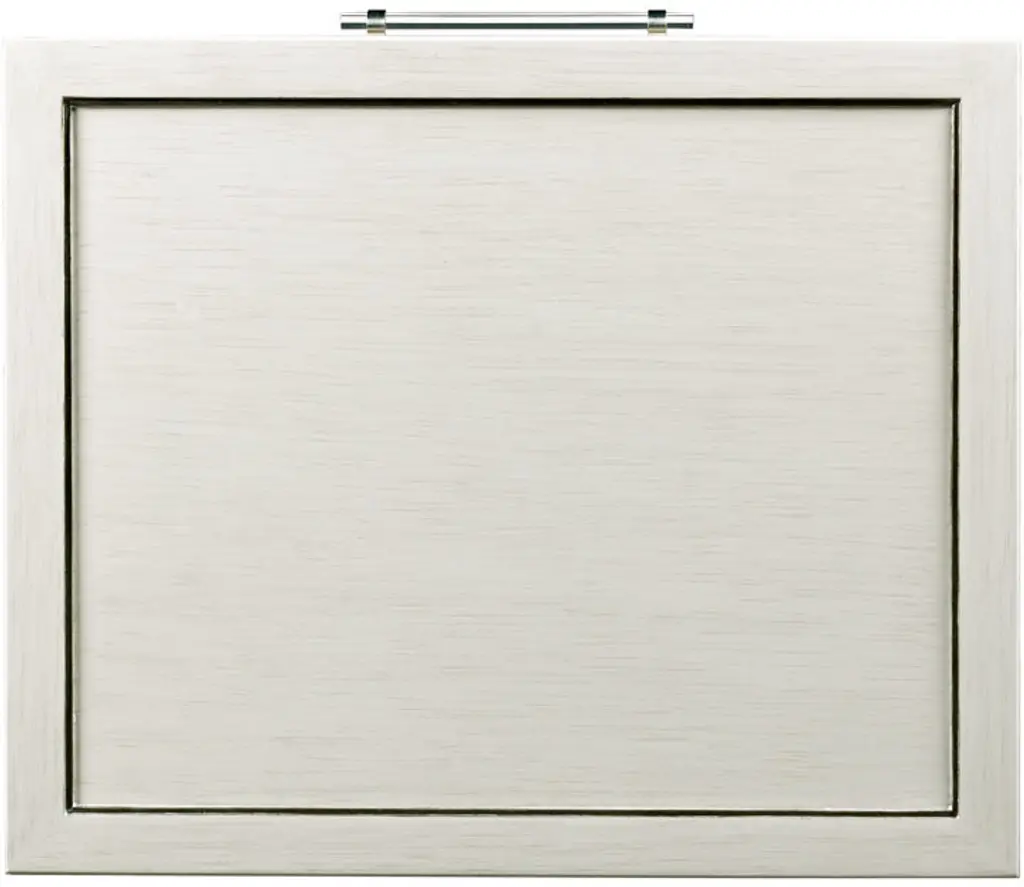 Silver trim accentuates the Moroccan shape of this side table's legs and the molding of the sides and drawer. The clear drawer pull, with its nickel-finish hardware, adds a contemporary touch.