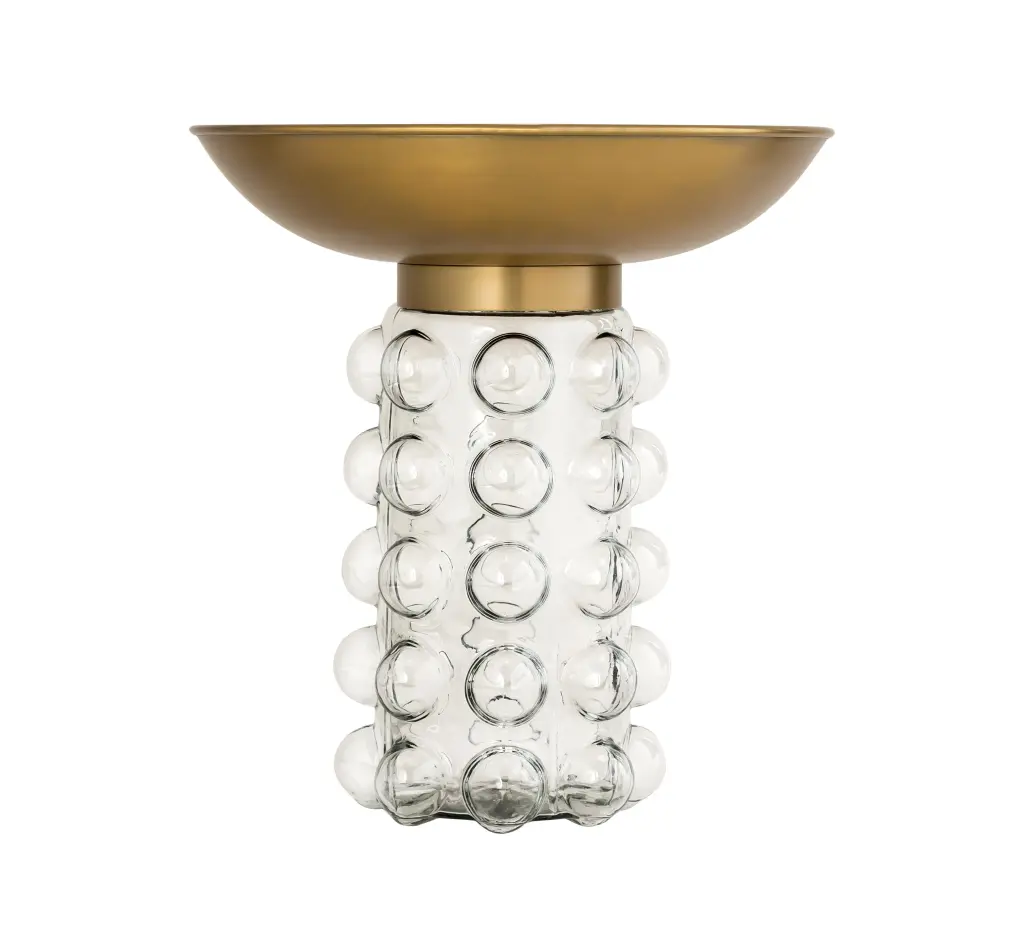 A playful and stylish combination of design and materials, the Bubble side table features a brass top supported by a transparent glass base. Use individually or in pairs to complement and enhance your living space.