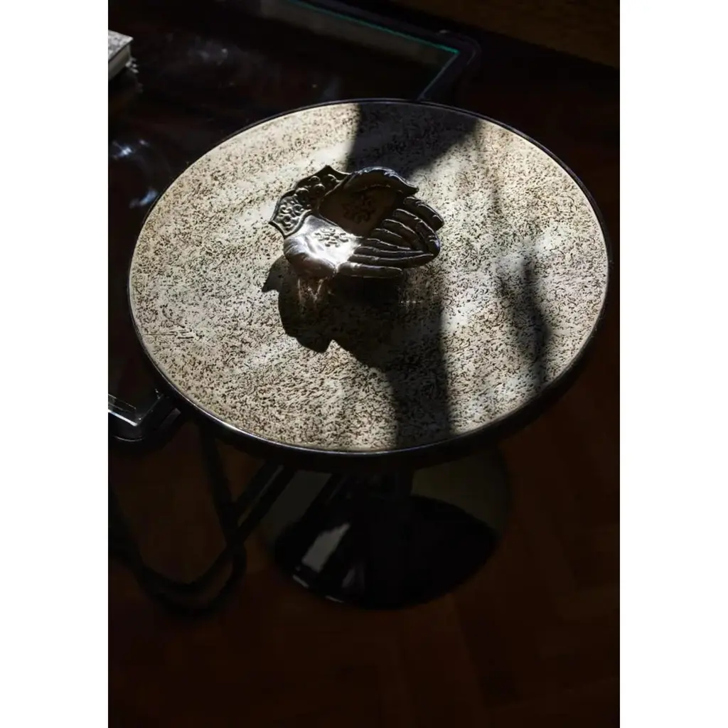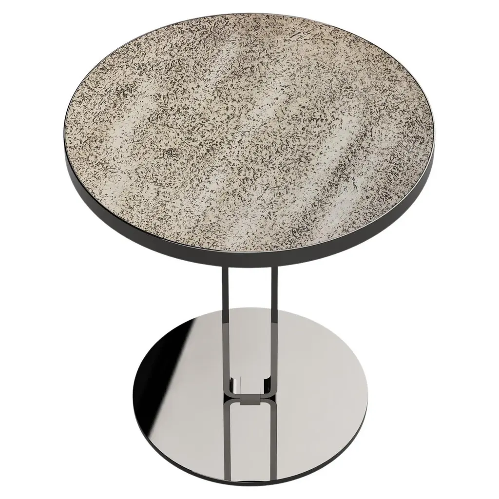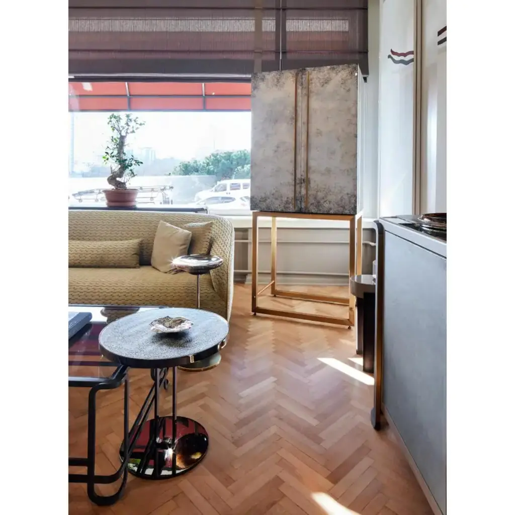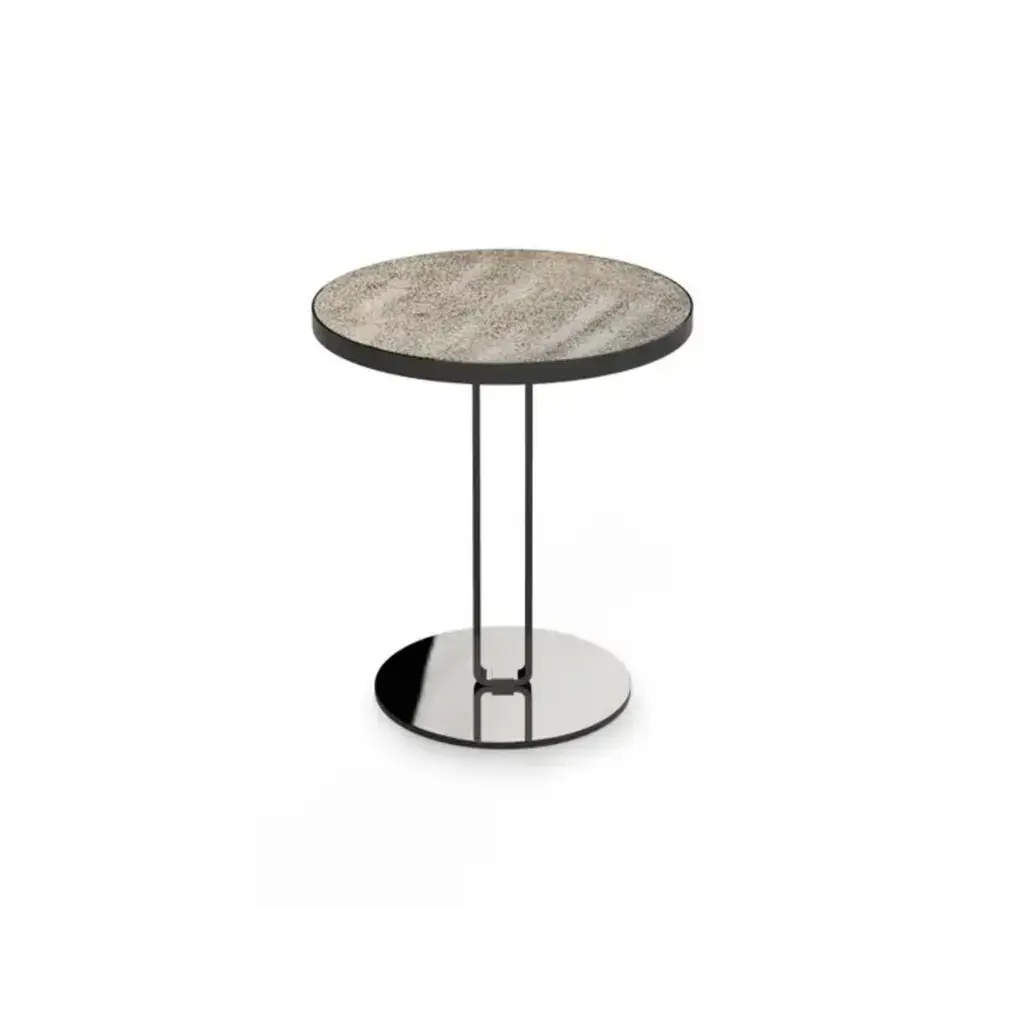 Budak Side Table by Ekin VaronDimensions: Ø 50 x H 56 cm.Materials: Shiny patterned lacquer on wood and titanium-plated metal.The base and top frame are available in powder-coated metal or titanium-plated metal finishes. The color of the lacquer and the dimensions of the texture can be changed upon request. Please contact us.Texture adds life and value to a space, so does a unique design. “Budak Side Table” is the perfect combination of both. The linear base of the Budak is in perfect harmony with the textured lacquered top which is crafted by hand creating a 3D effect. Ekin Varon is the founder and creative director of Ekin Varon Design Studio. Born and raised in Istanbul, Ekin has worked in various architecture firms and furniture design studios after completing her academic education in the furniture department of Rhodes Island School of Design. Having a sculptor mother and a father who is in the textile business, Ekin grew up having an appreciation of various artistic disciplines and a desire for creative expression. In 2020, the former co-founder of 15 West Studio, founded Ekin Varon Design Studio. Interdisciplinary art is at the center of Ekin’s design approach. Using various craftsmanship techniques in her designs, she creates multi-layered, unique furniture, objects and environments. Originality is the main driver of her designs and she achieves that by creating timeless designs that harmonize modern aesthetics with traditional Turkish craftsmanship.