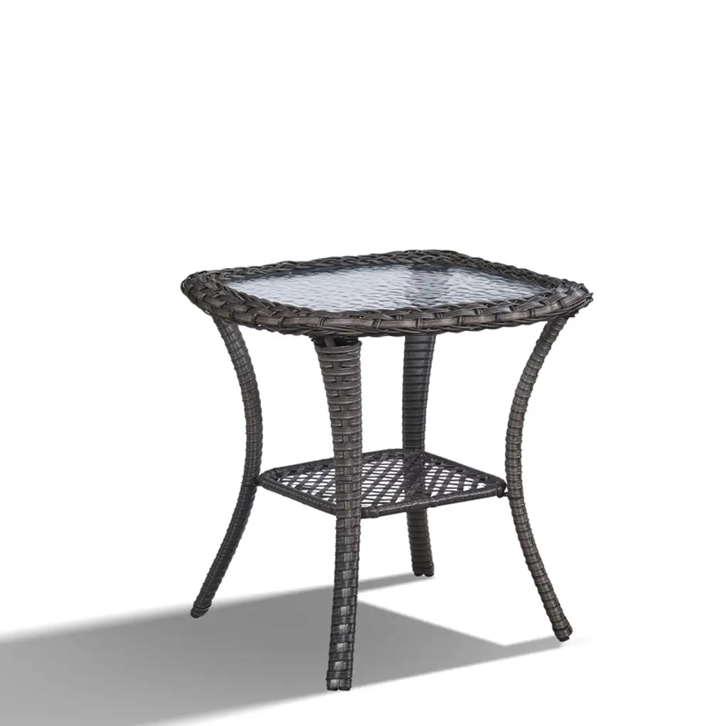 Buenhomino Patio Tables Wicker Side Table - Gray Rattan End Table With Glass Top Square For Outdoor Outside Patio Porch Deck