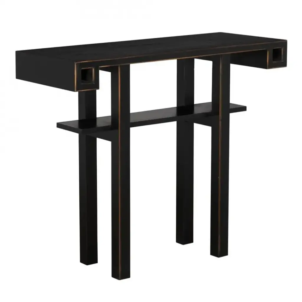 Hand-carved local hardwood. Hand-finished Macassar ebony with faux painted bone detail.