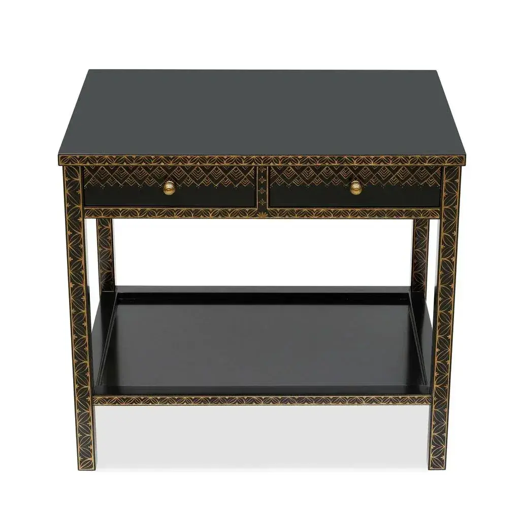 Bunny Williams Home Percival Side Table With Gold Geometric Detail