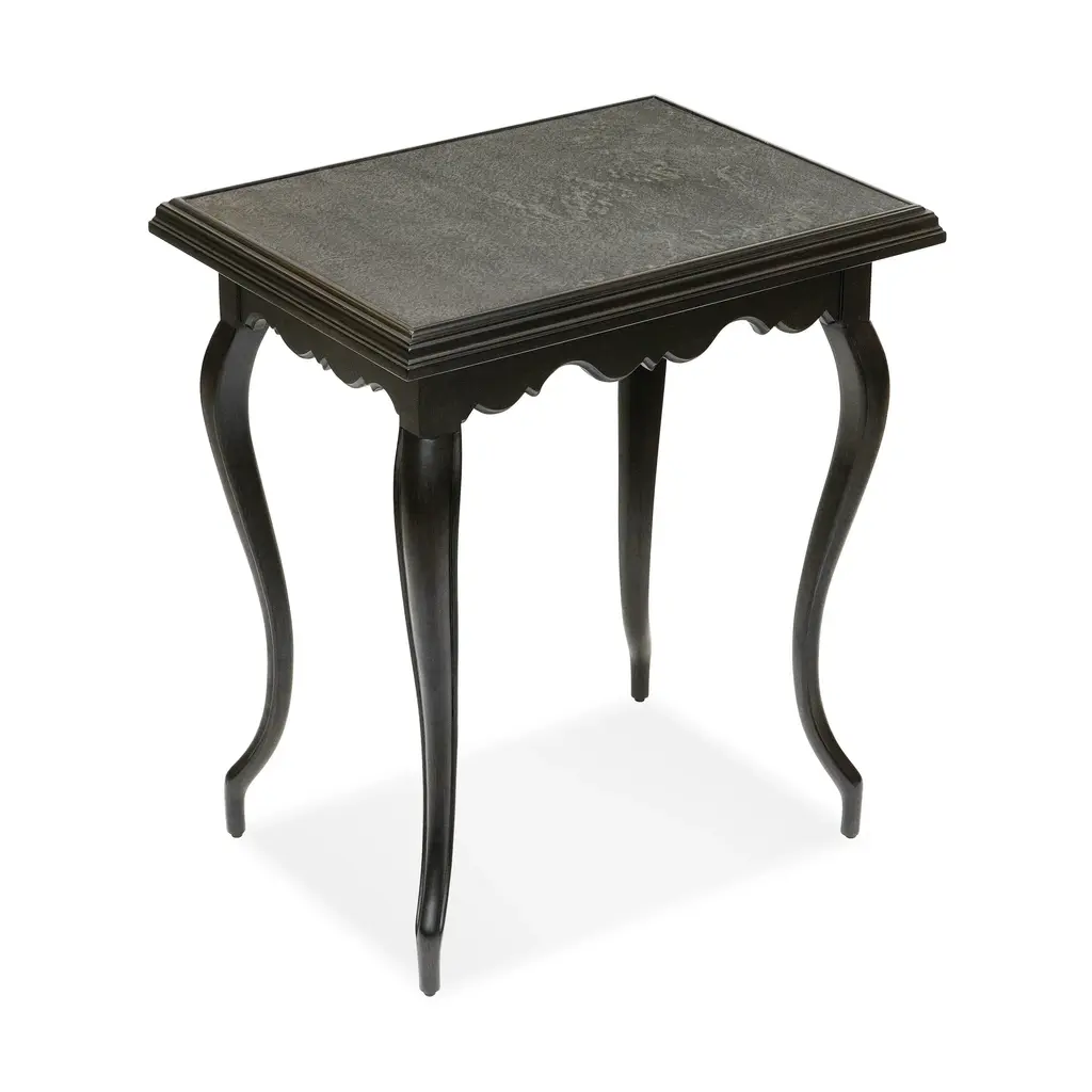 While treasure hunting for antiques, Bunny came upon a truly remarkable French table that instantly caught her eye. Captivated by its distinctive slate top, she set out to create something equally enchanting. Our new side table features graceful cabriole legs and an ebonized finish, this table stands out with both its smart and unusual slate top as well as its crisp form—a subtle yet striking nod to the timeless elegance that inspired it.