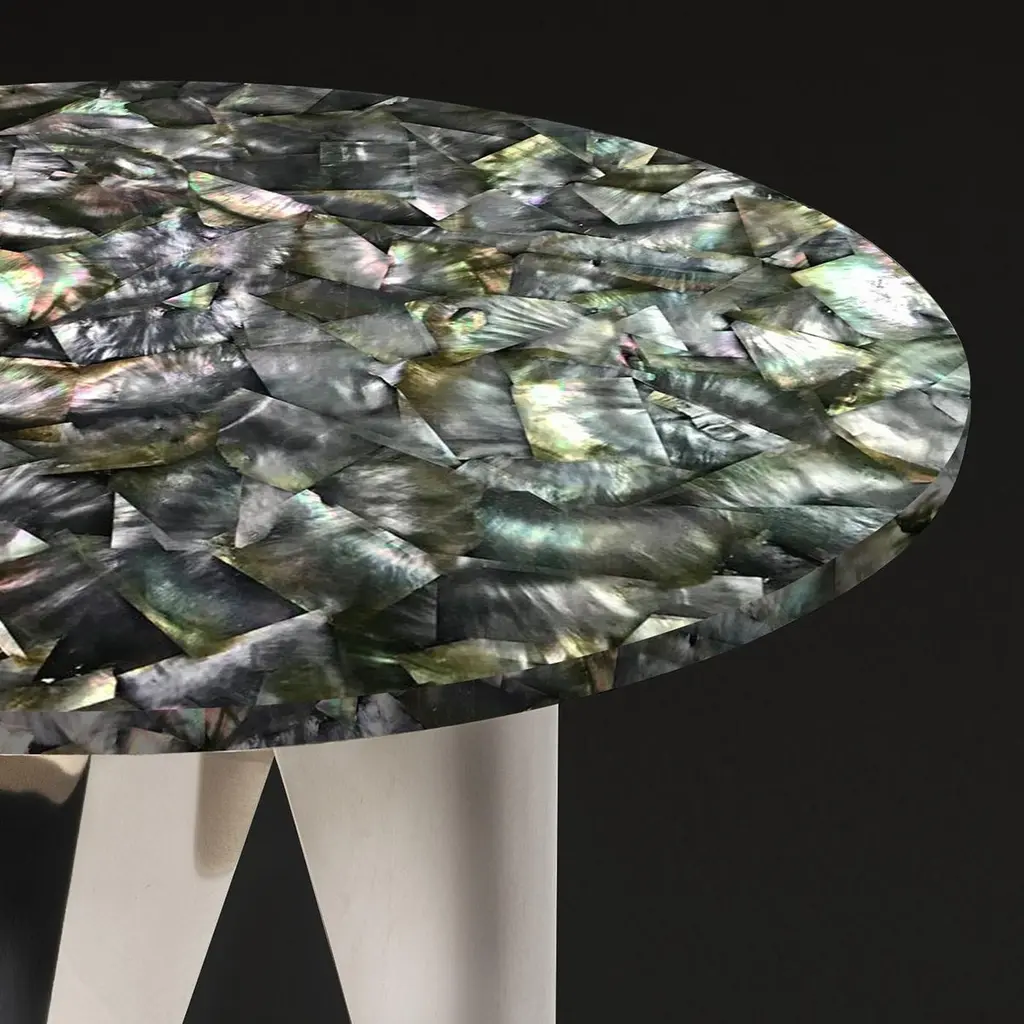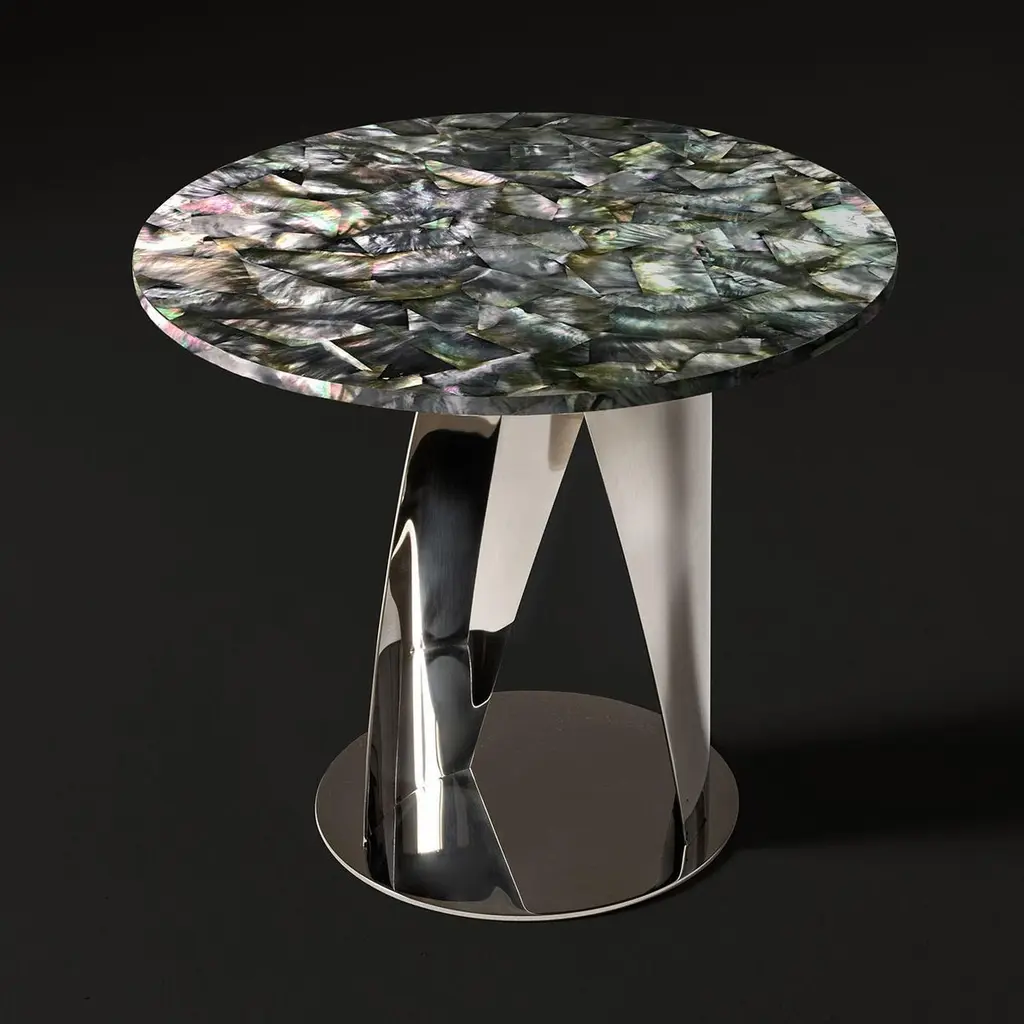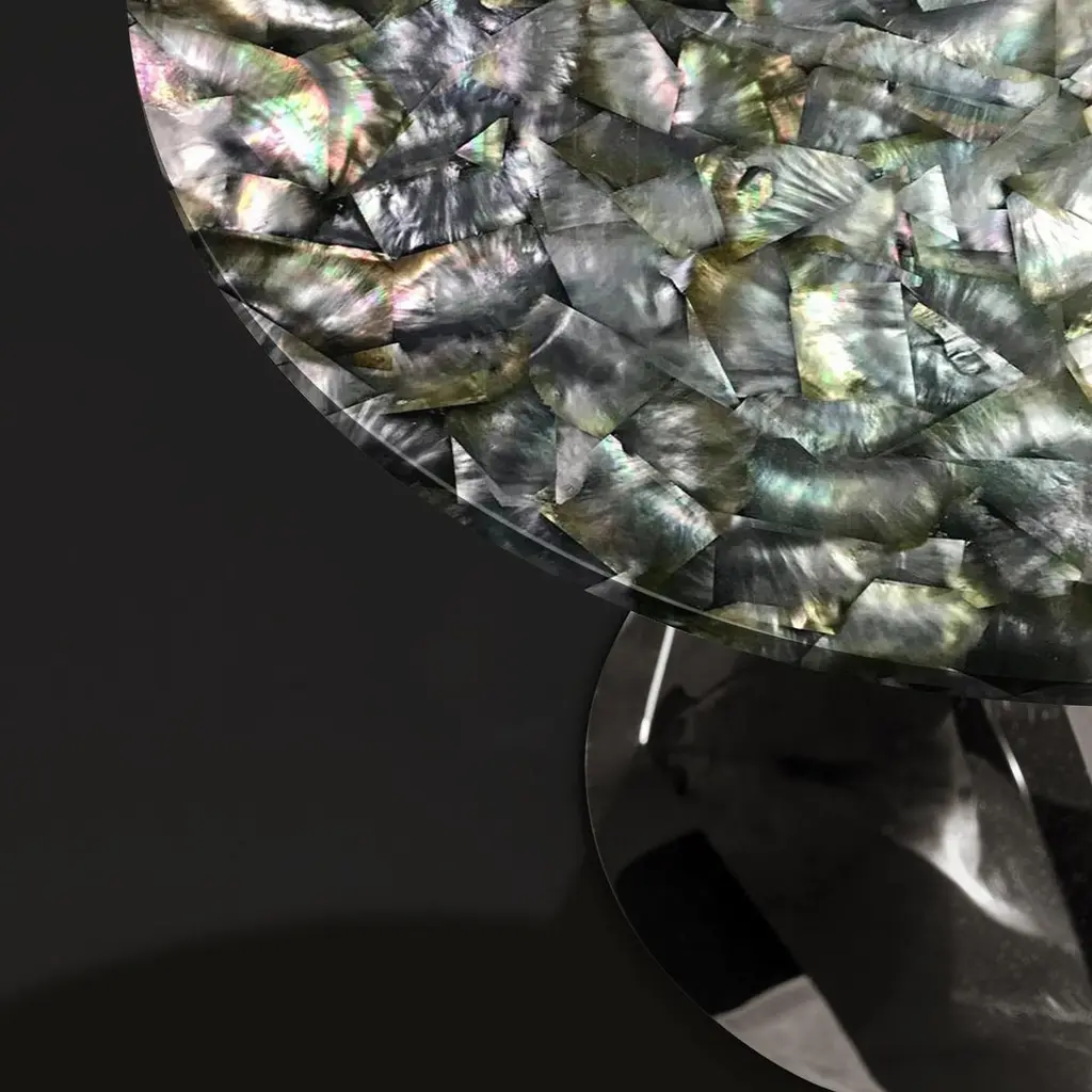 Buonanotte Round Black Nacre & Chromed Side Table By Obsydian Stone