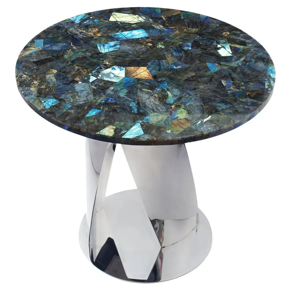 Buonanotte Round Black Nacre & Golden Side Table By Obsydian Stone