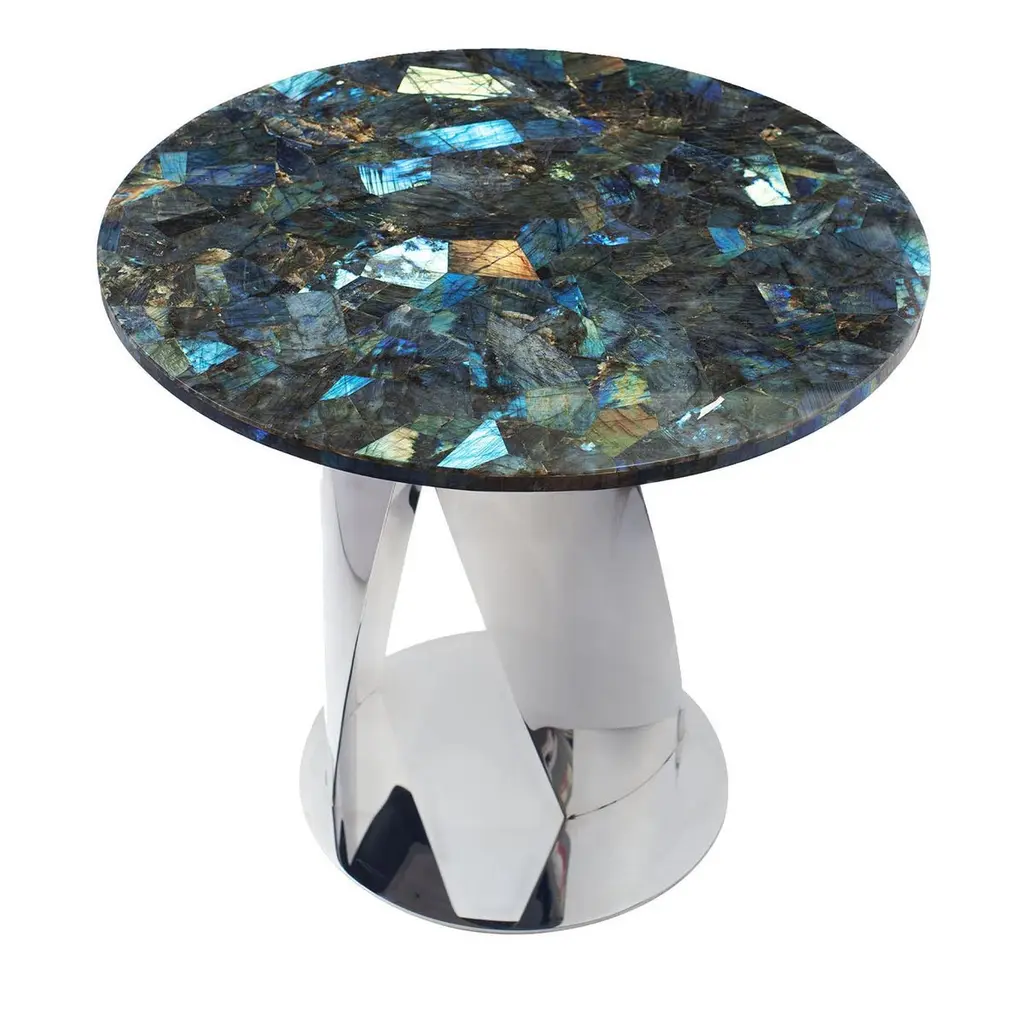 Buonanotte Round Labradorite & Chromed Side Table By Obsydian Stone