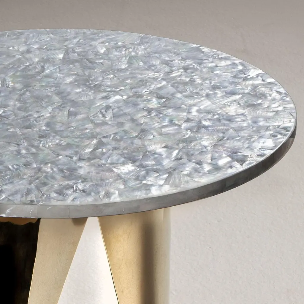Buonanotte Round Nacre & Golden Side Table By Obsydian Stone