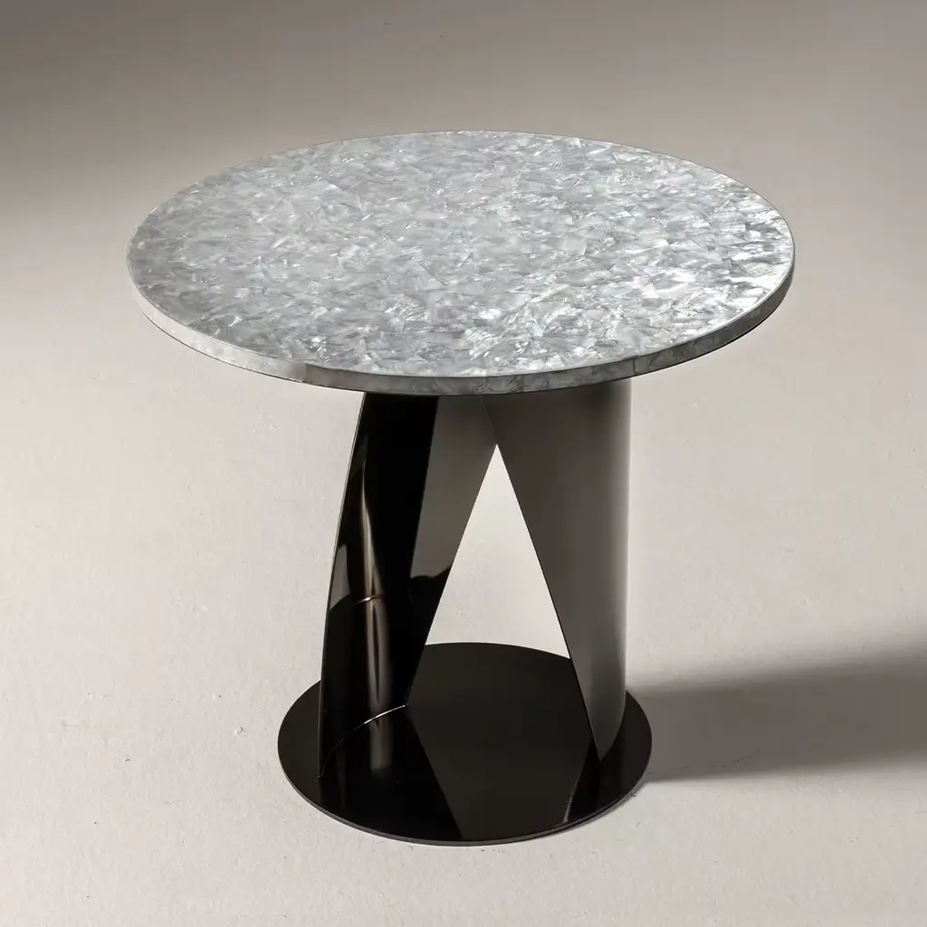 Buonanotte Round Nacre & Gun-Metal Gray Side Table