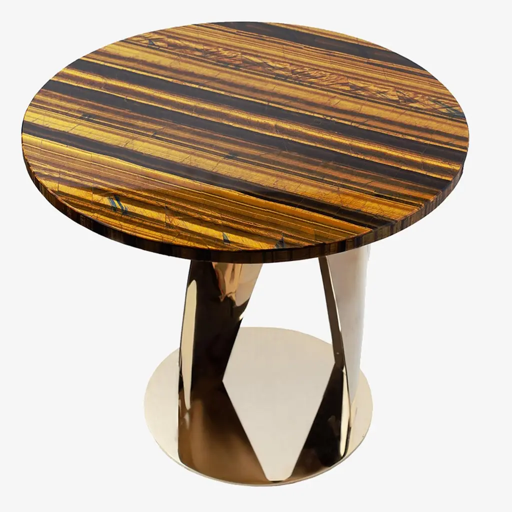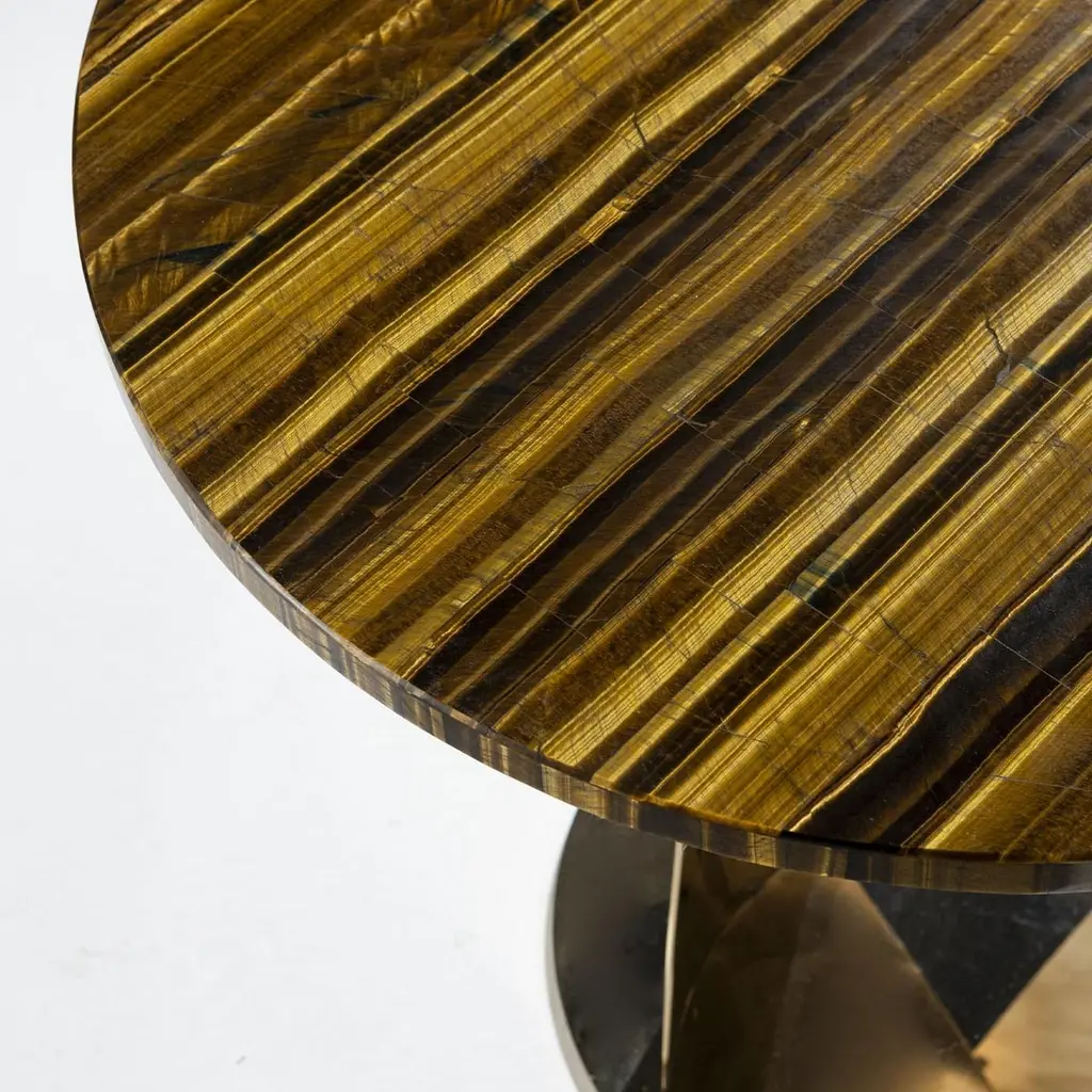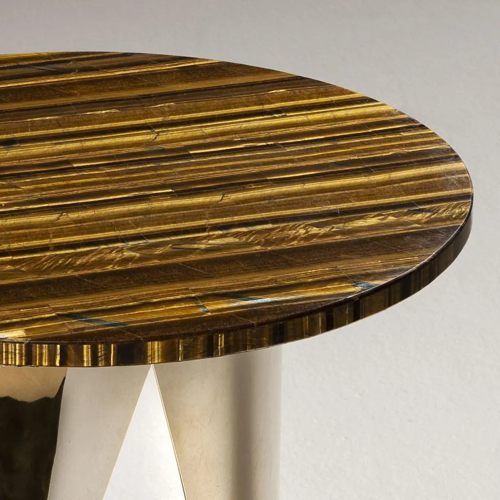 Buonanotte Round Tiger-Eye & Golden Side Table By Obsydian Stone