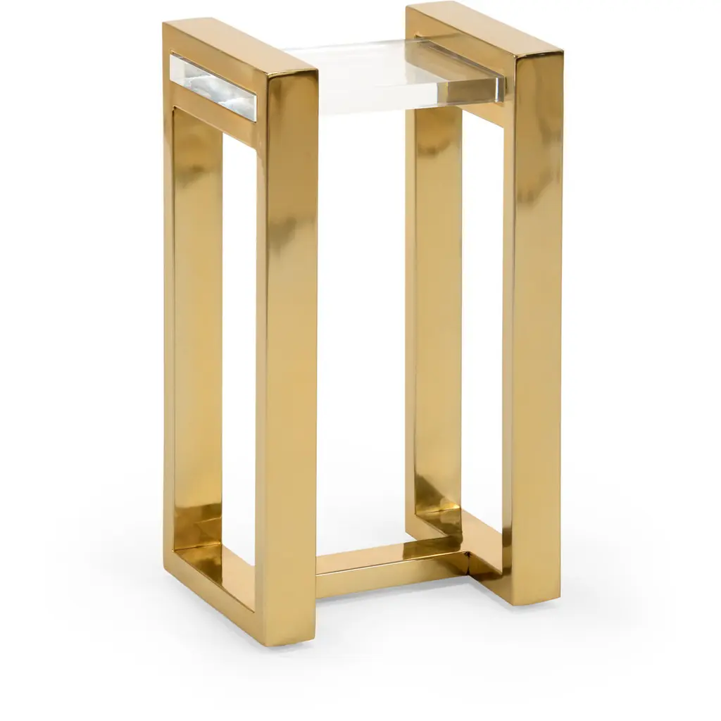 Small Drinks Table In Polished Brass Finished Metal With Acrylic Shelf