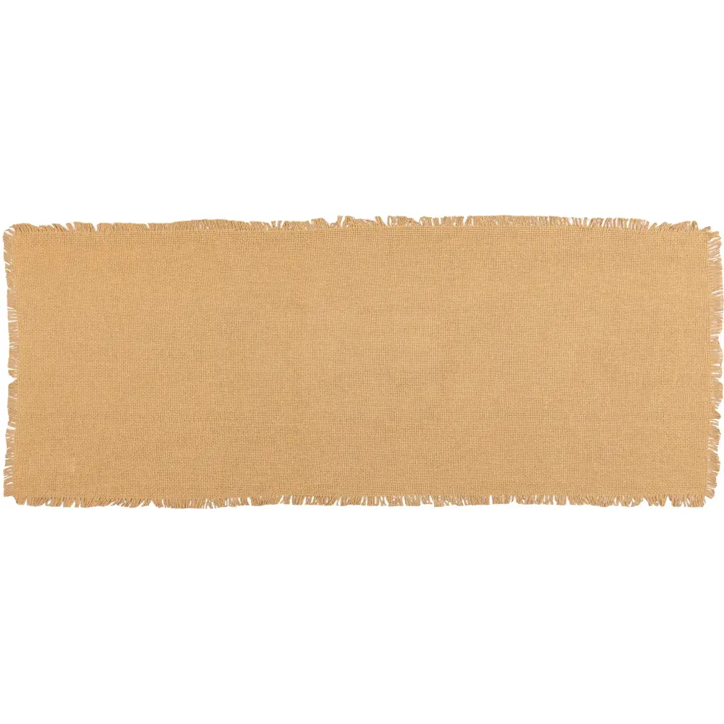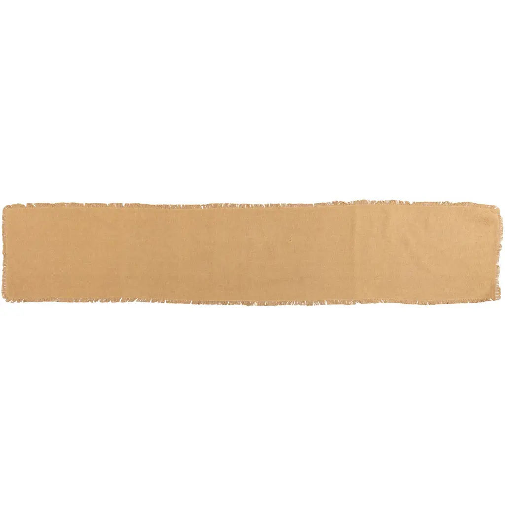 The Burlap Fringed Runner updates your table in timeless appeal that compliments farmhouse, industrial, shabby-chic, traditional country, and many other decor styles. Featuring a textured, woven appearance, this relaxed table runner brings a neutral finishing touch to your dining table whether eating a meal at home with family or hosting a holiday party. The added fringe gives this 100% cotton burlap runner an old-fashioned, distressed feel that creates visual interest to wherever you place it such as on your kitchen table, side table, buffet, tea cart, or coffee table. Machine wash gently to clean.MATERIAL & CONSTRUCTION: The loose-weave, 100% cotton burlap gives texture to your home and feels softer than regular jute burlap. Due to the nature of the frayed edges, additional fraying may occur for a versatile rustic finish.COORDINATING ACCESSORIES: Pair this table runner with our matching placemats to create a cohesive look and mood in your dining space during a casual family gathering or a rustic holiday dinner party. Try our Burlap Natural curtains and other accessories to truly get a complete burlap feel in your home.FARMHOUSE DECOR: The unique texture and versatile style of this dark tan runner gives your table a refresh in a simple way that combines well with farmhouse, traditional country, rustic, or shabby chic looks. The fringed edges and loose weave add a cozy, rustic feel to your dining room or kitchen.PERFECT GIFT: This burlap table runner makes a charming gift for any occasion. Give this classic decor accent to friends and family as a wedding, housewarming, or birthday present.CARE INSTRUCTIONS: Because of the distressed, fringed edges, we recommend hand washing for lasting use. Lay flat to dry. When washed, the weave tightens. Gently iron to relax the weave and return burlap to its original state.