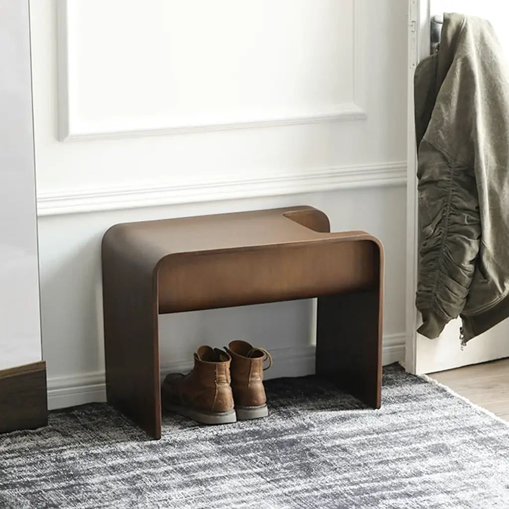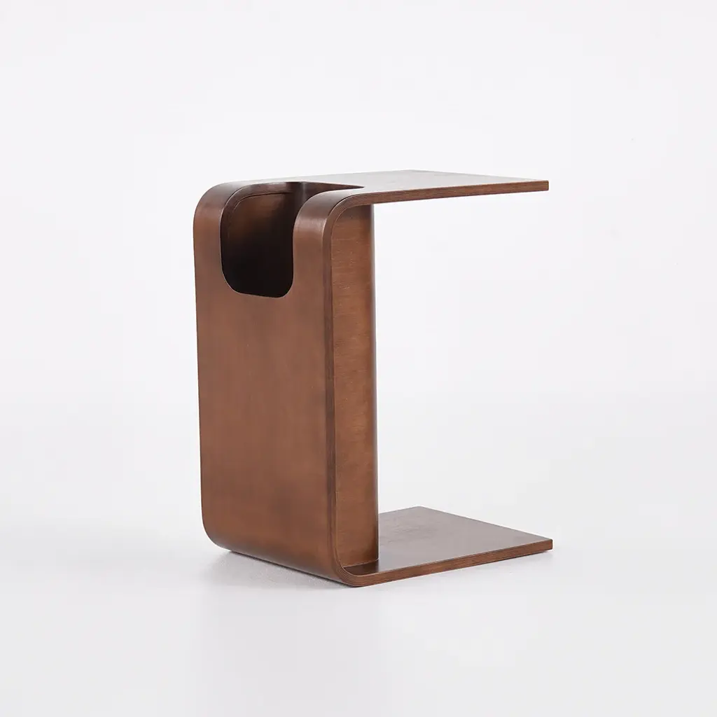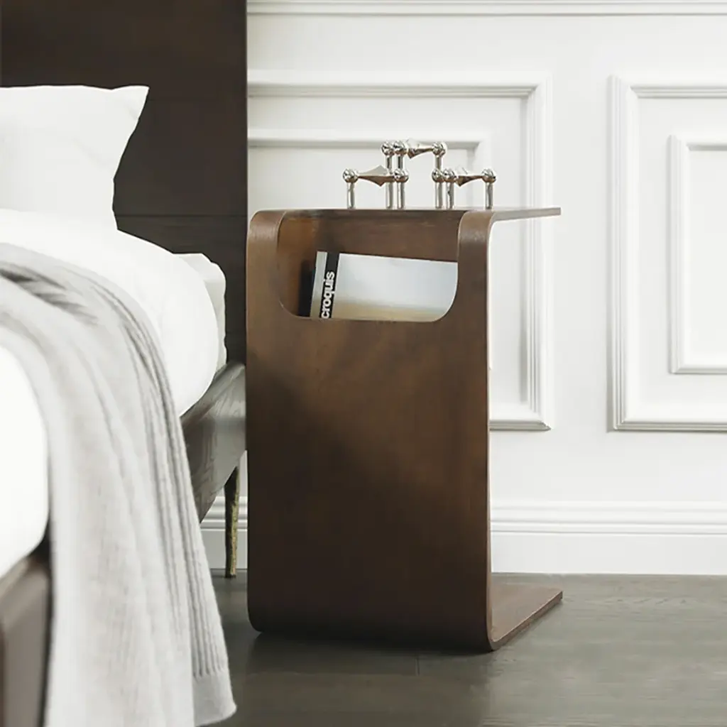 C-Shaped Walnut Convertible Wood Side Table With Storage
