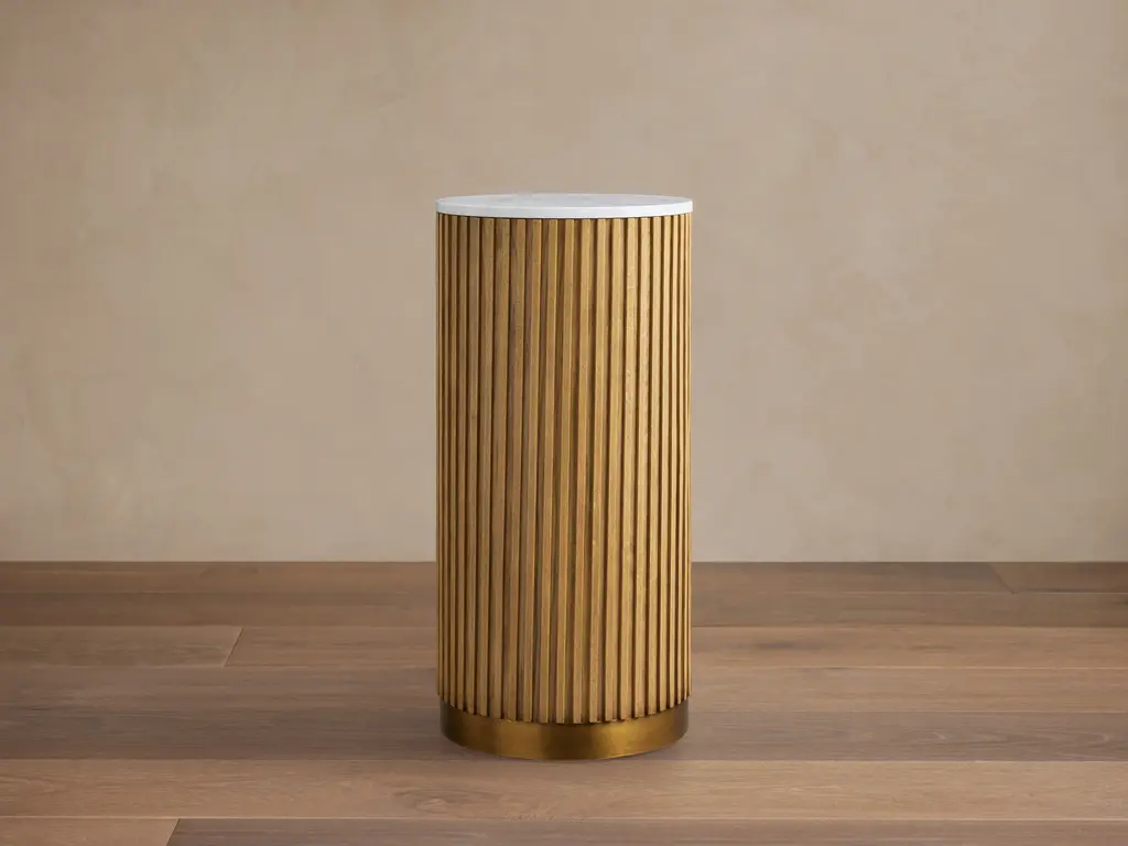 Architectural poise. Ably shaped from reconstituted stone. Fluted edges call to mind classical columns.