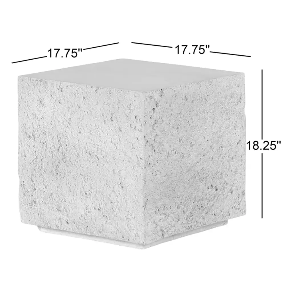Bring a touch of industrialism to outdoor styling. A squared end table of solid white concrete features raw edging for texture and novelty alike. Cover or store indoors during inclement weather and when not in use.