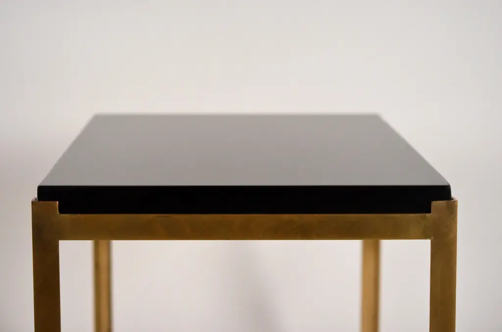 Caisson' Solid Brass And Black Lacquer End Tables By Design Frères - A Pair