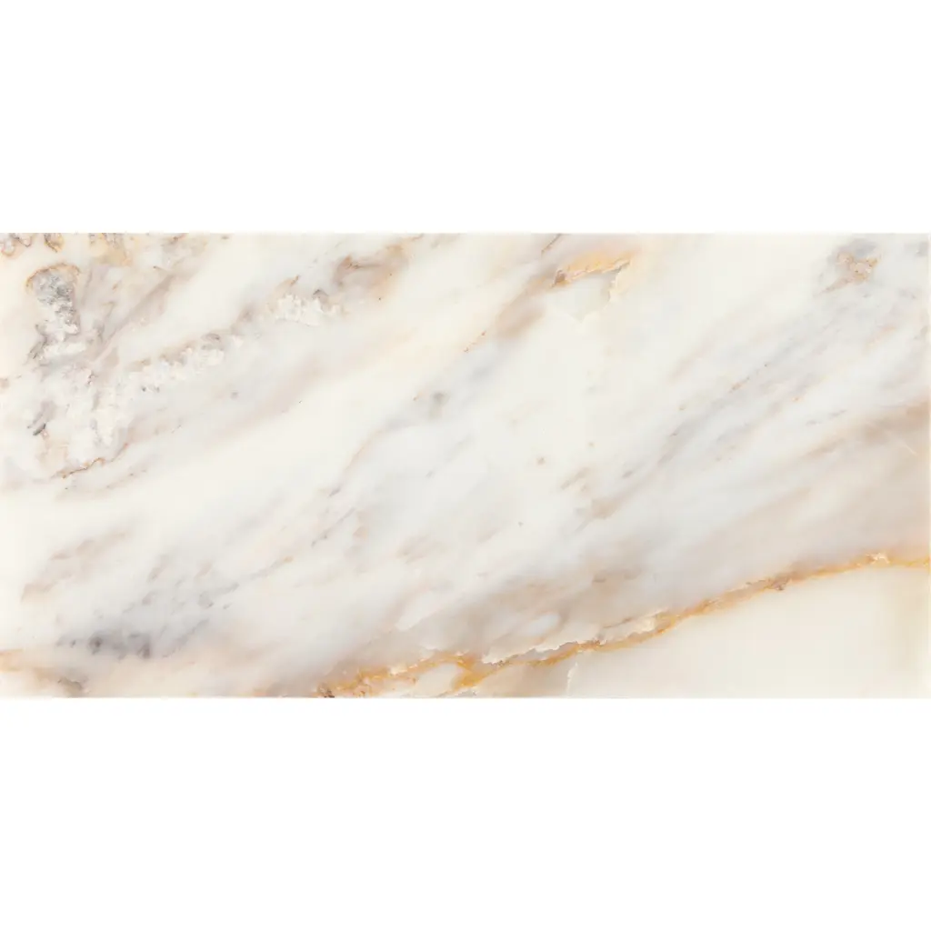 White marble with thick veining that varies with gold, brown, beige and dark grey. Seven materials are used throughout our TRNK Collection made-to-order casegood products, including raw travertine, calcatta, and nero marquina. Order a sample to view firsthand the unique veining and texture that only nature could create. Marble is a highly prized natural stone that is admired for its timeless elegance and beauty. Not only is it known for its stunning appearance, but it is also an incredibly durable material that can withstand the test of time. Its unique characteristics, including natural irregularities and subtle veining, make each piece of marble truly one-of-a-kind. Collection Highlights: Segment Table Series 'Hathor' by Farrah Sit 'Fawohodie' by Studio Anansi Swatch size is 4in x 4in. Additional material options are available upon request.