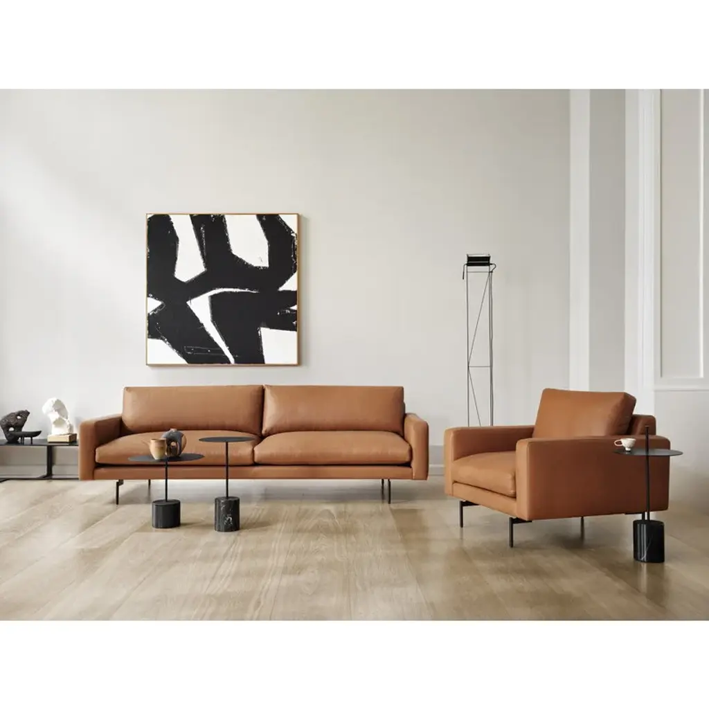 Wendelbo's Caliber side table gets its impressive character from the streamlined silhouette, blending geometric shapes together in a surprising way. The stylish low side table is made from luxurious Nero Marquina marble, with a varying surface pattern that brings delightful uniqueness to the look of each table. The thin table top is made of strong powder-coated steel that will stand the test of time and use, whether you place a modern table in your hallway, living room or bedroom.