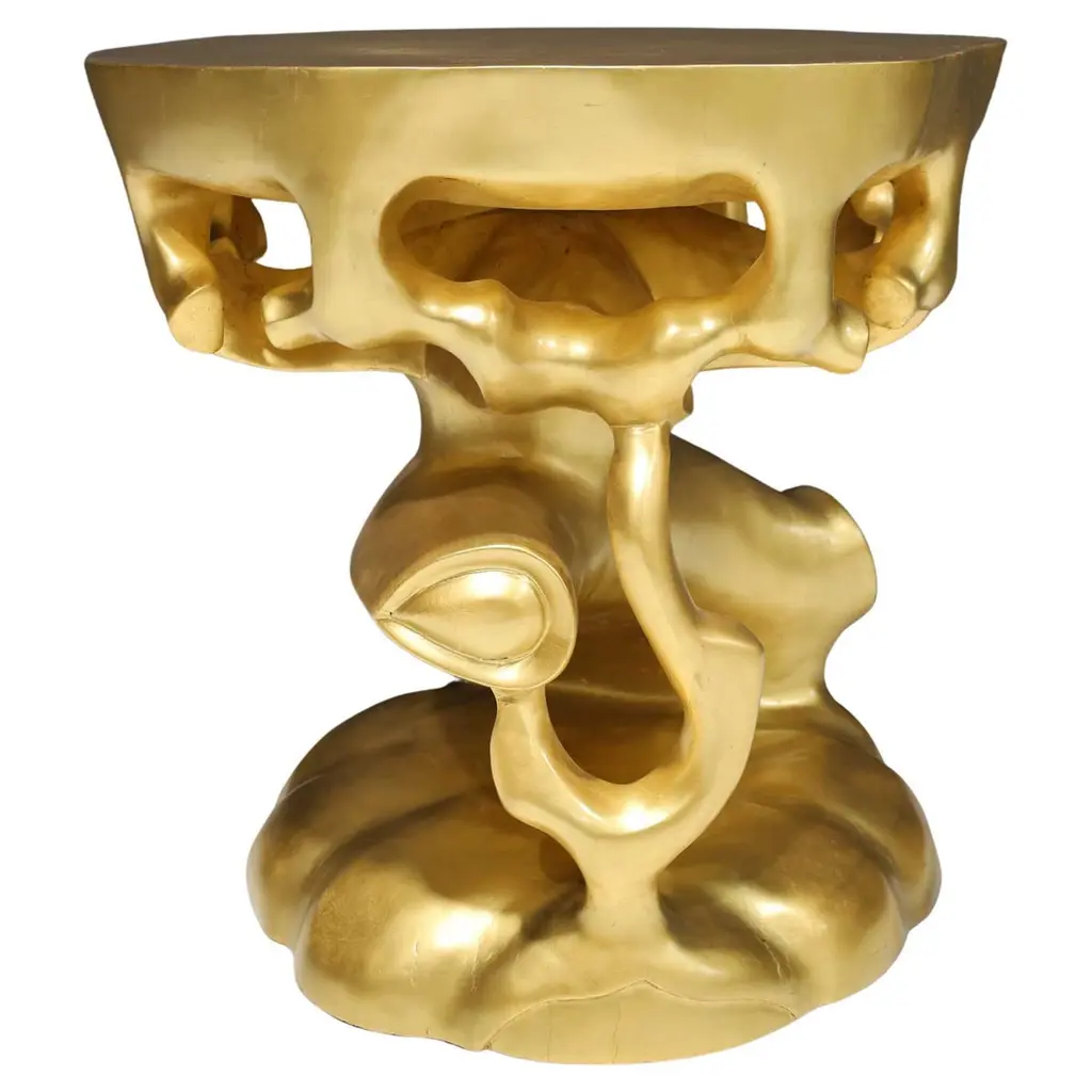 Calligraphic Sculpted Side Table In Black-Painted Brass By Misaya
