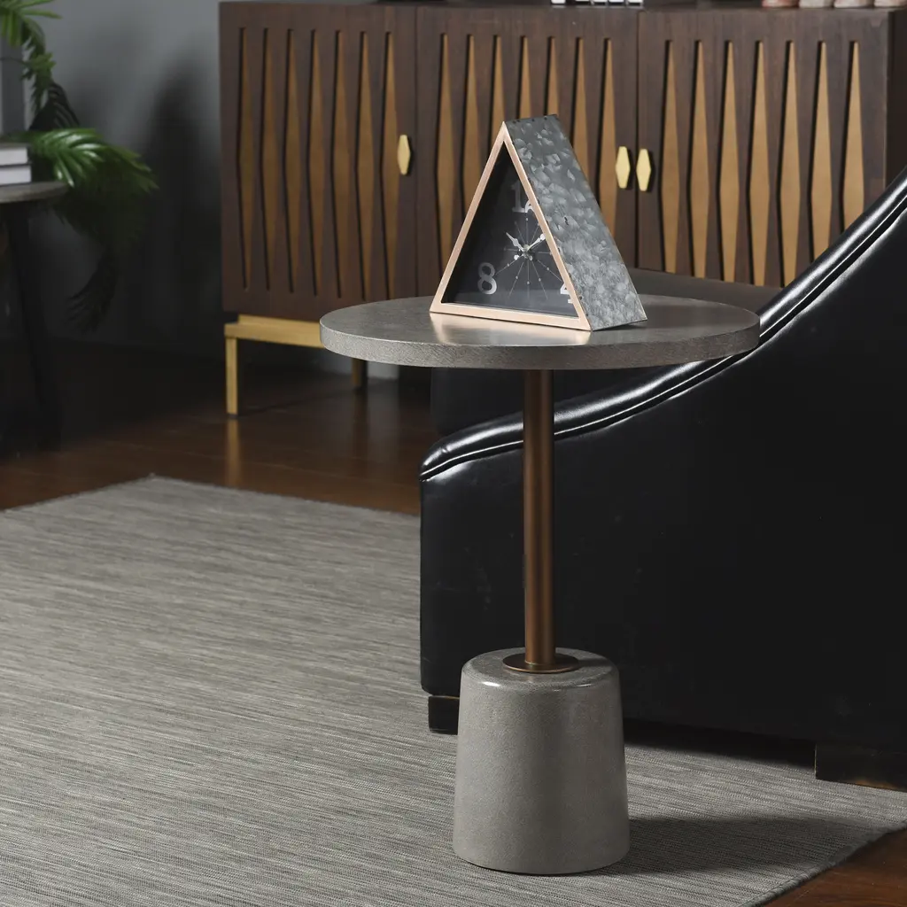 Round Accent Side Table with Concrete Pedestal Base - Grey, Bronze Finish