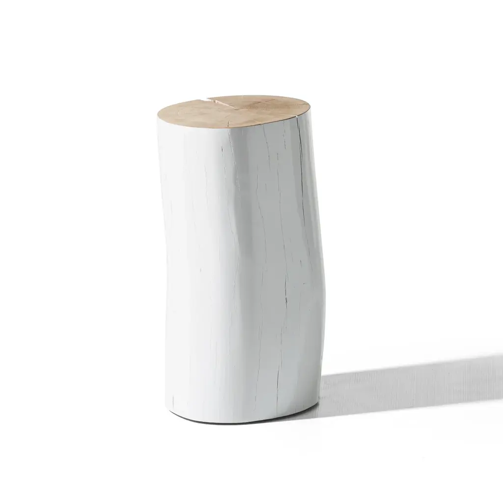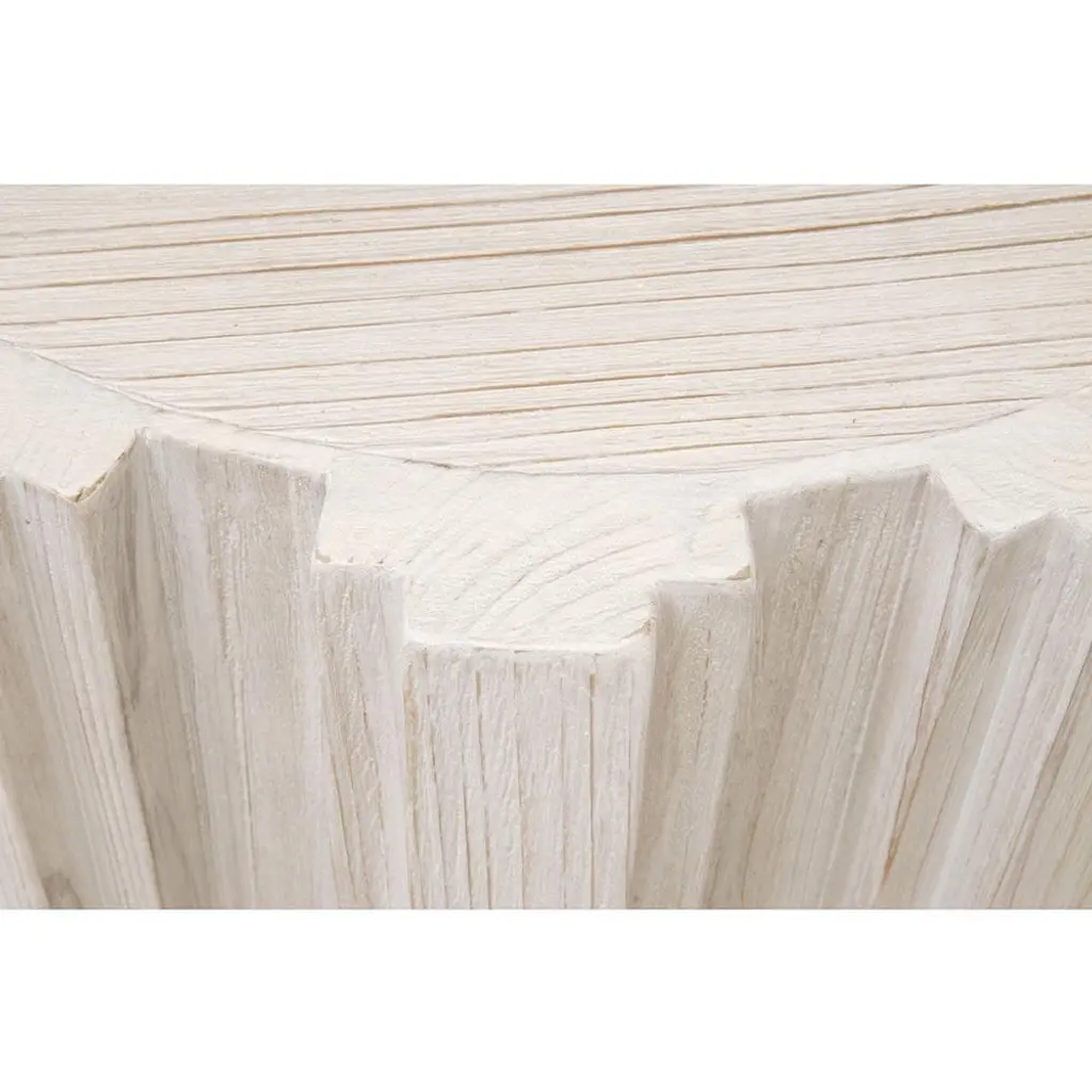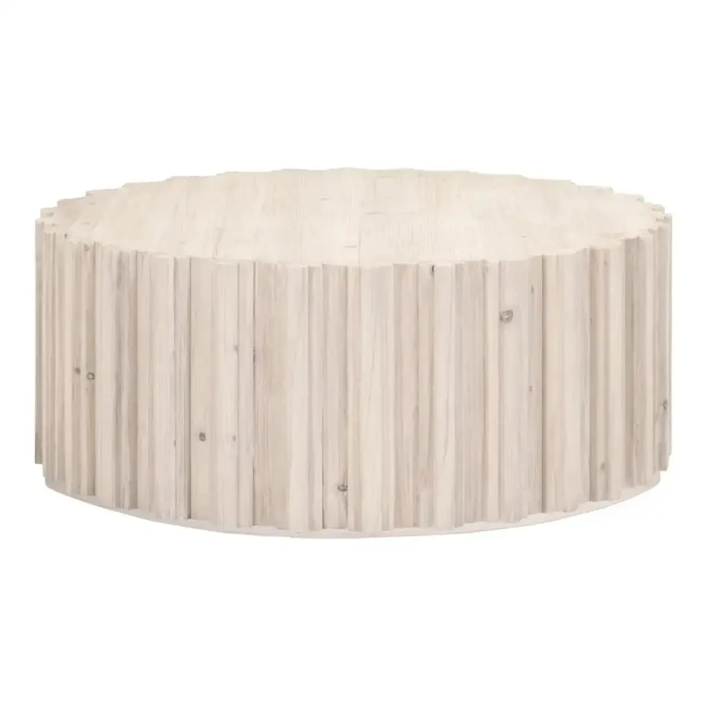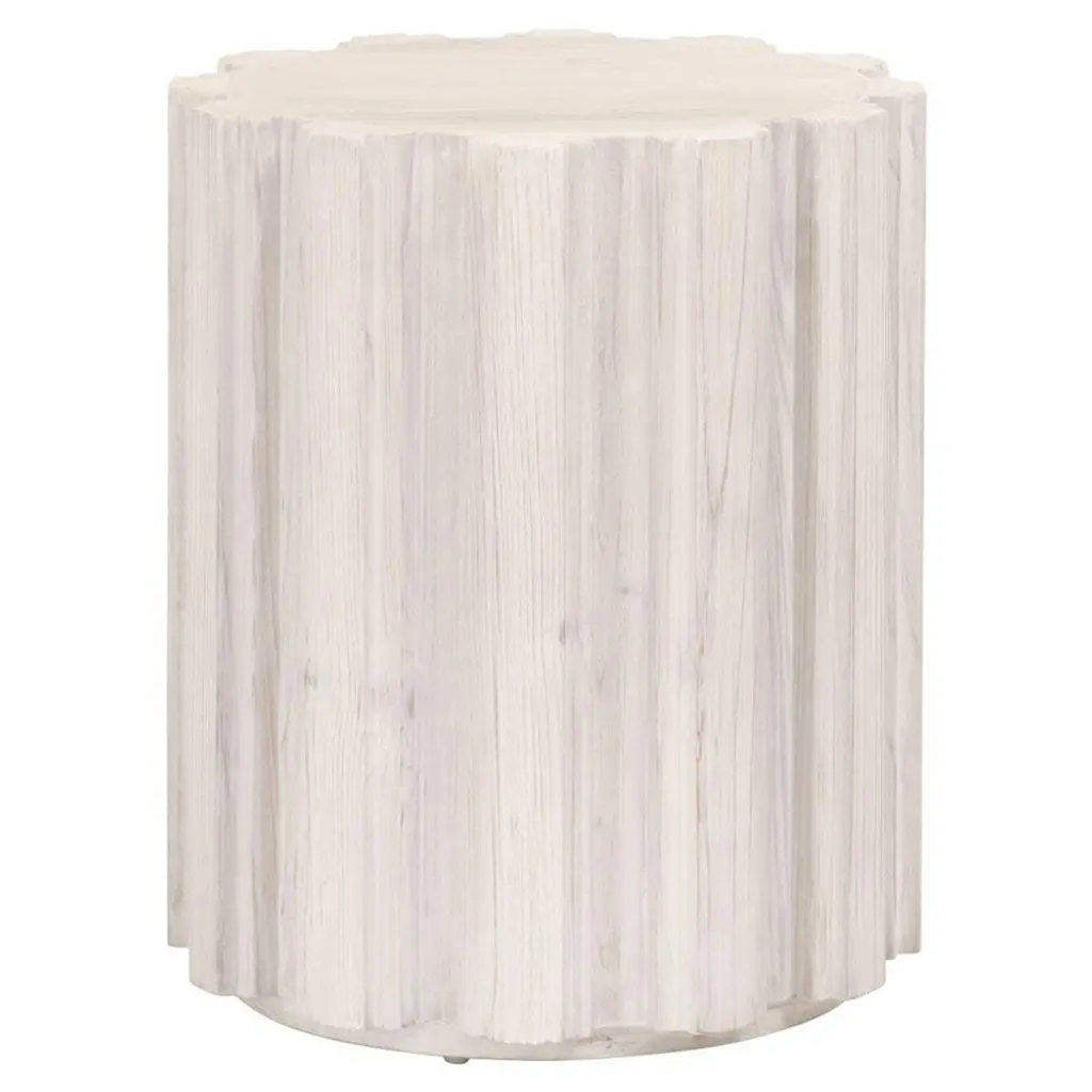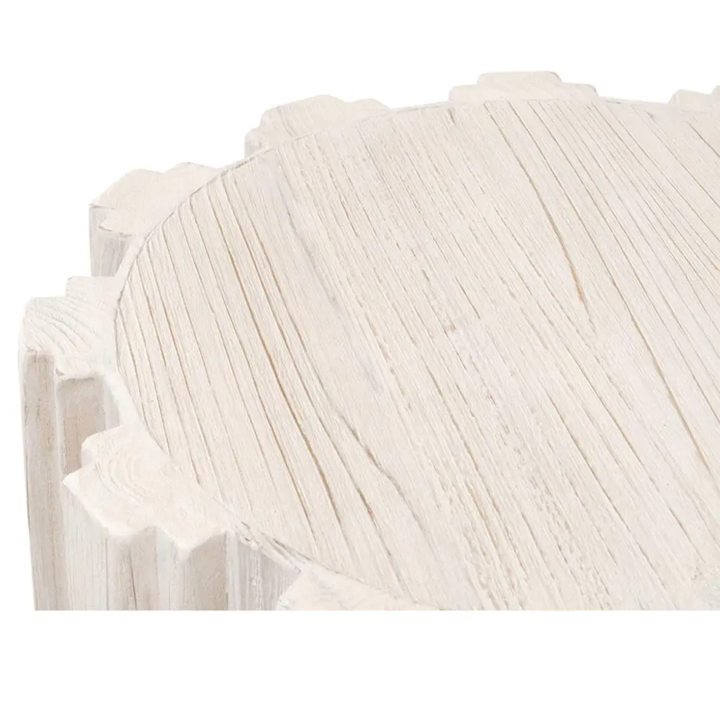 Camie French Country Whitewash Reclaimed Pine Wood Round Accent Side Table