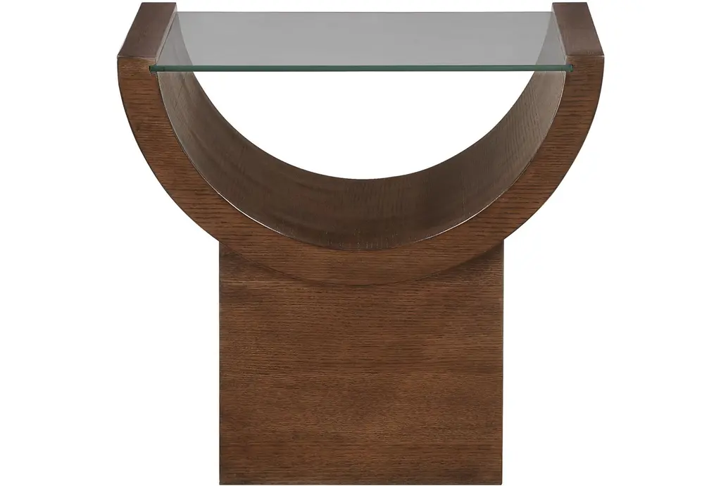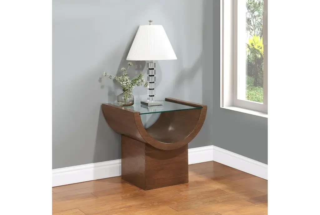 Camille Modern Curve Brown 20" Glass Top End Table | Square