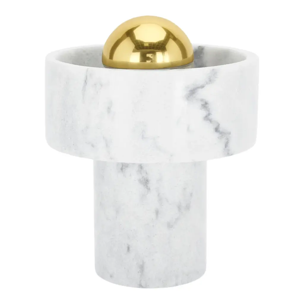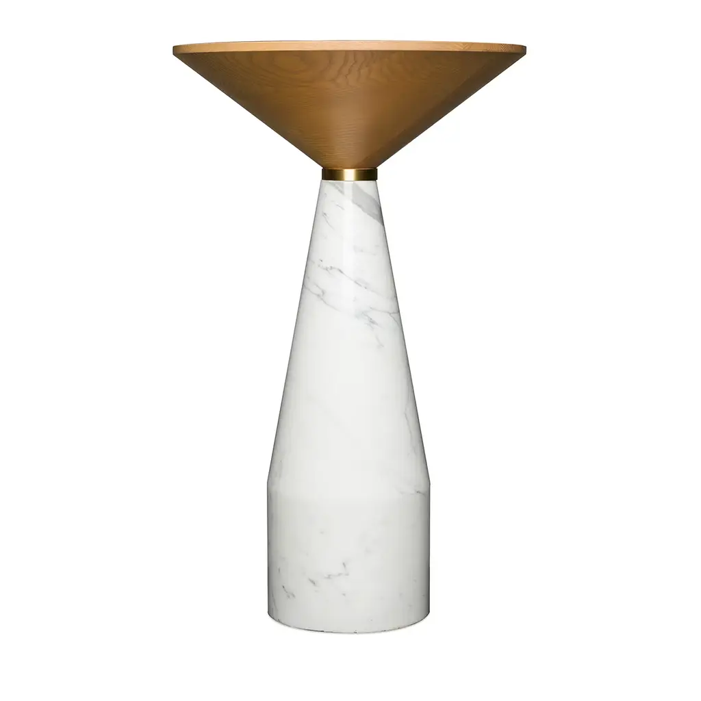 Minimal, Monumental, Majestic. Built from elemental forms—two cones sandwiching a sphere in solid marble and brass—our Canaan Accent Table is the ultimate tiny table. Treat yourself to a classic.