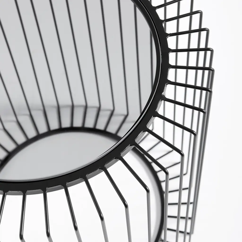 The Canasta side table sports a minimal design with its iron, wire base in a monochromatic finish. A circular glass surface-top nestles perfectly into the symmetrical metal frame. This stylish accent table has a subtle look that makes it the perfect complementary piece in any contemporary space. Use it to add a hint of modern beauty to a traditional leaning living room space, or let it fit naturally into any minimalist-modern aesthetic.