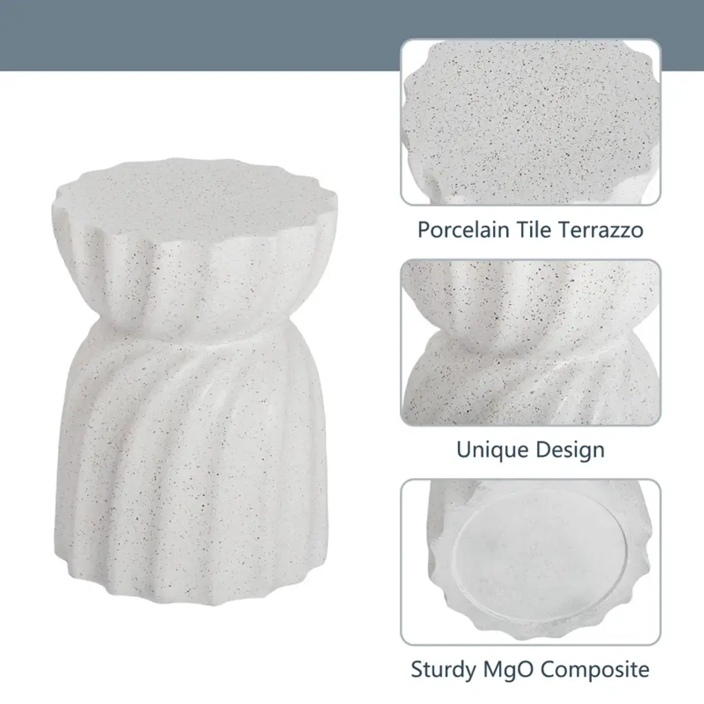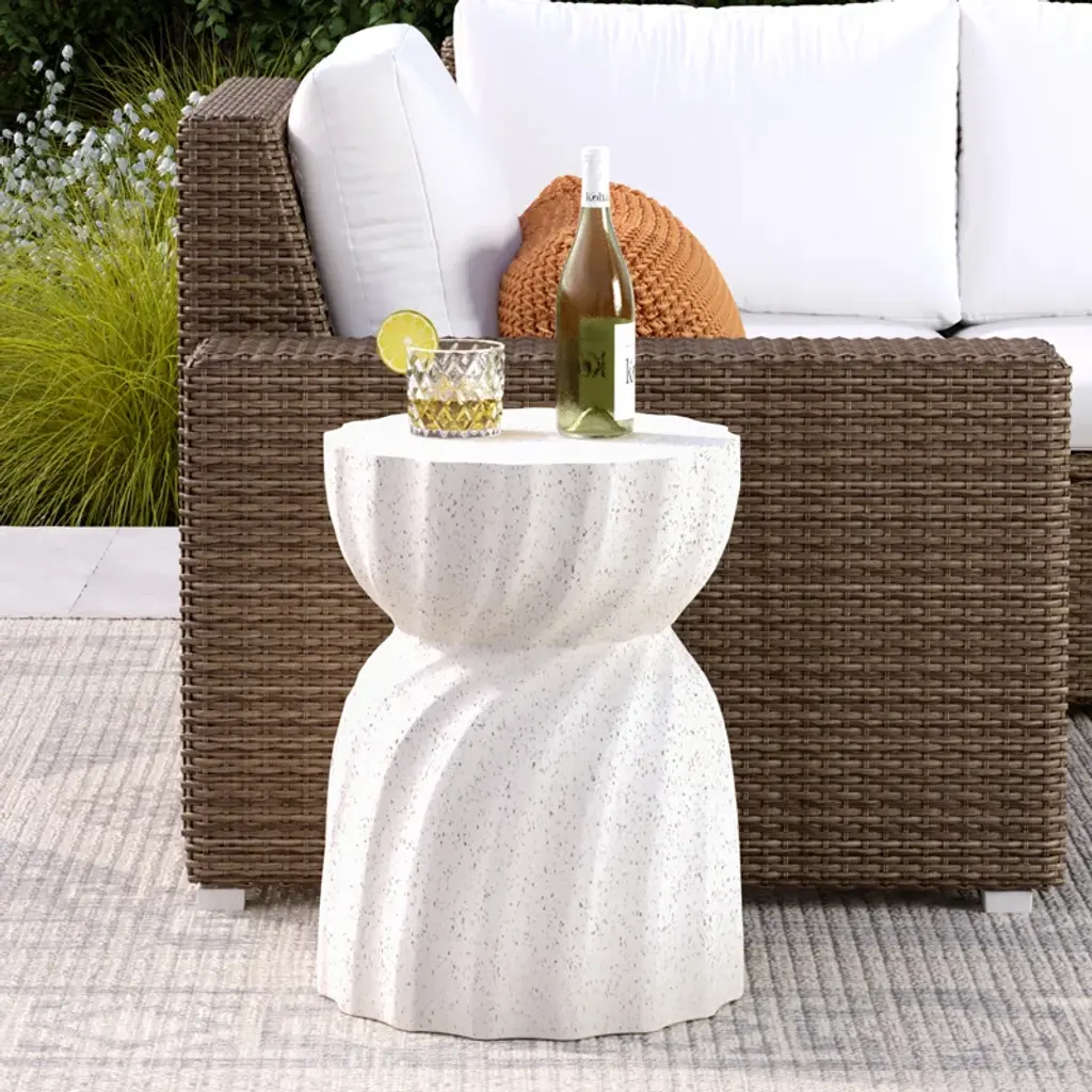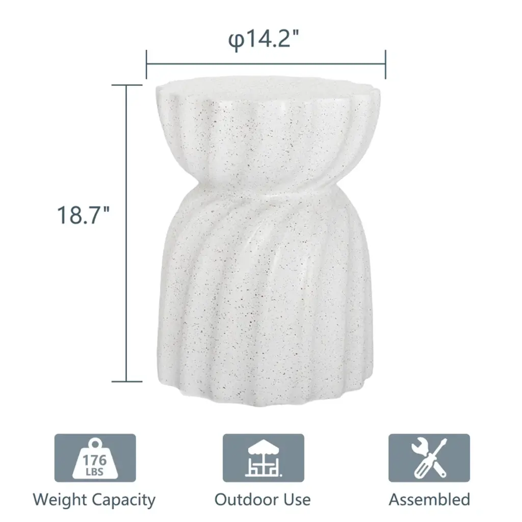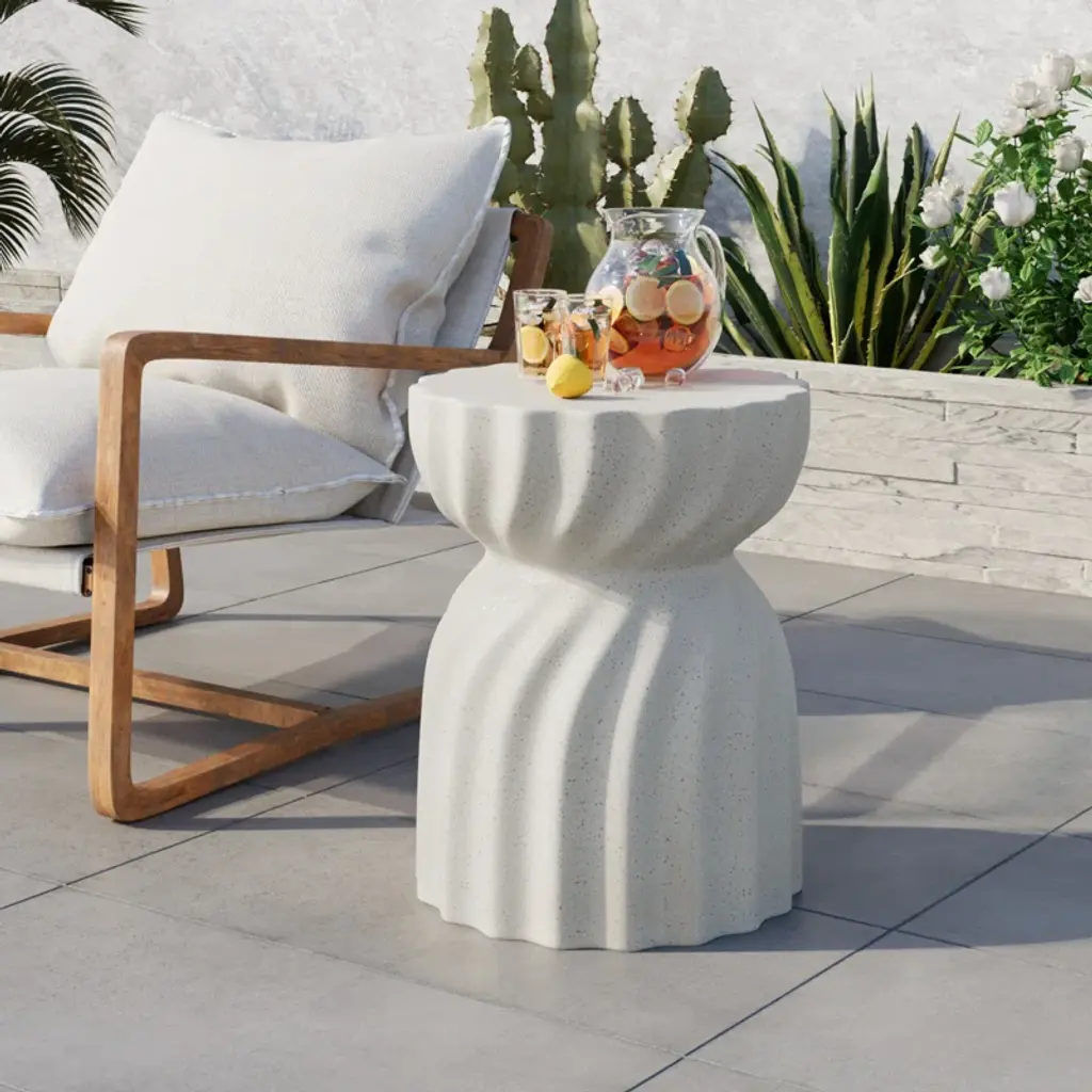 Say hello to this round side table, your next outdoor essential. This table is crafted from durable, weather-resistant stone and concrete, ready to take on those sunny days and summer nights. The neutral color offers a clean, fresh look that easily blends with any decor. It's more than just a place to hold your iced tea – it's a testament to your impeccable taste. Plus, it's UV resistant to keep its crisp look all season long. Remember, no assembly required - just set it and forget it!