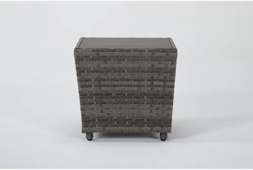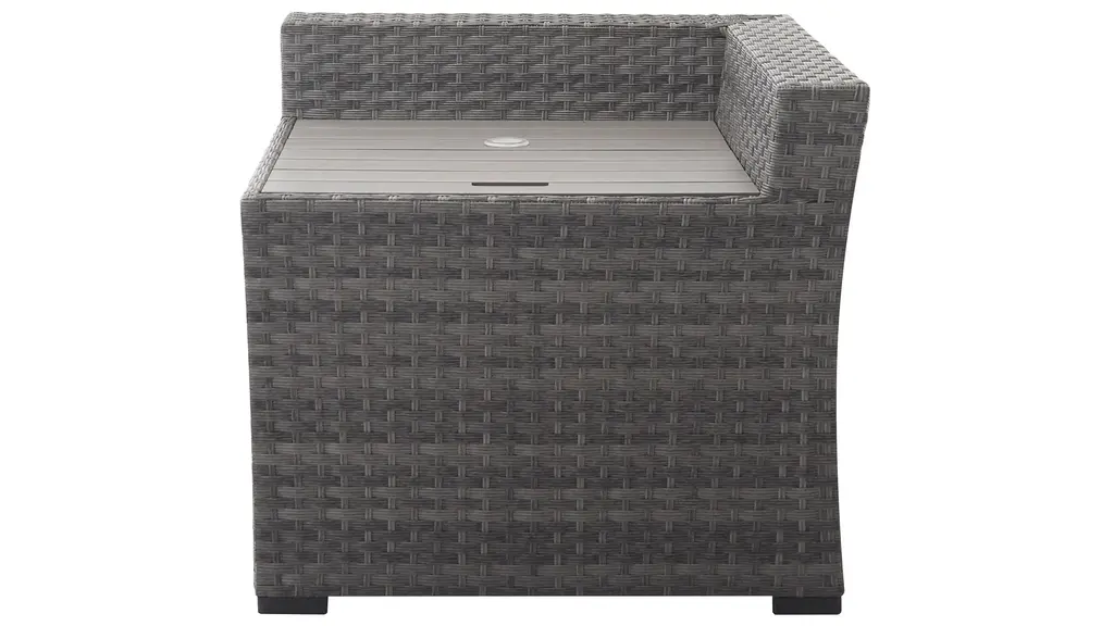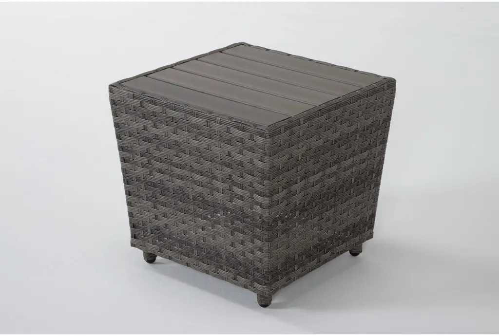 Perfect for relaxed days spent lazing or entertaining away, our Cannon outdoor collection is here to make your backyard more comfortable and functional at a phenomenal value. Aluminum frames wrapped in resin wicker offer durability and beauty, so you can rest easy in your own paradise. The end table serves as an ideal perch for drinks and snacks. This patio piece will elevate your outdoor space.