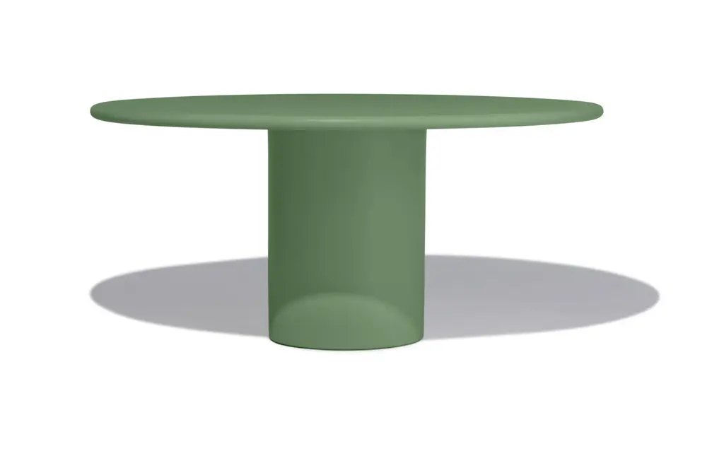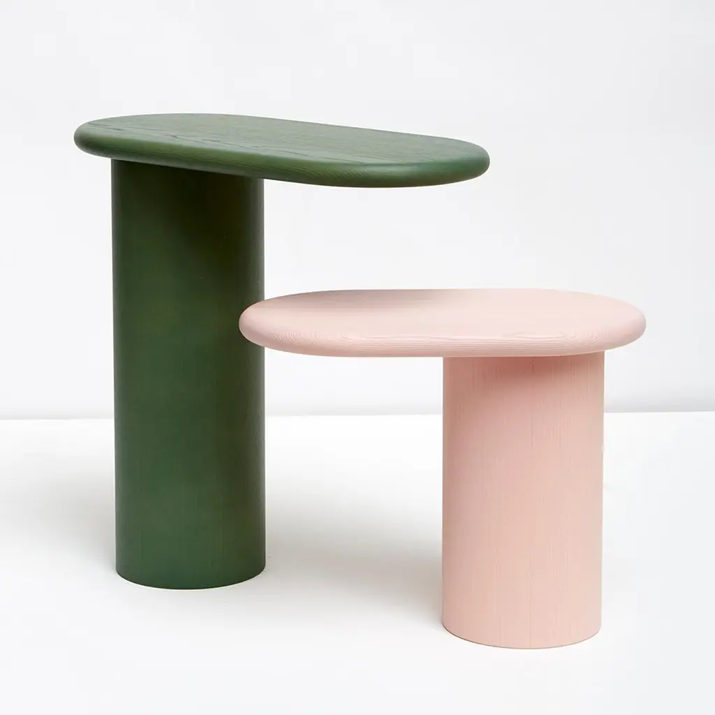 Baring attractive curves and a sleek shape, this end table embodies simple elegance through a minimal design that features a sturdy column base and an elongated oval cantilevered top, a feature that gives the collection its name. Designed to sit perfectly next to a sofa, and also available in a lower version to fit armchair height, this table designed by Matteo Zorzenoni is crafted entirely of ash wood with a matte lacquered green finish. Please contact us for other available colors, both glossy and matte, and stained wood.