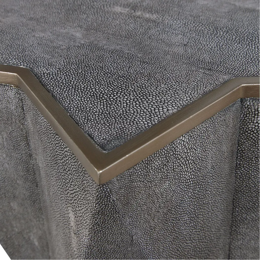 Unique Star Shaped Accent Table Features A Charcoal Gray Faux Shagreen Wrap/Accented With A Hand Applied Gold Leaf Trim.