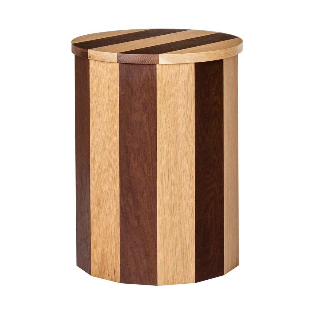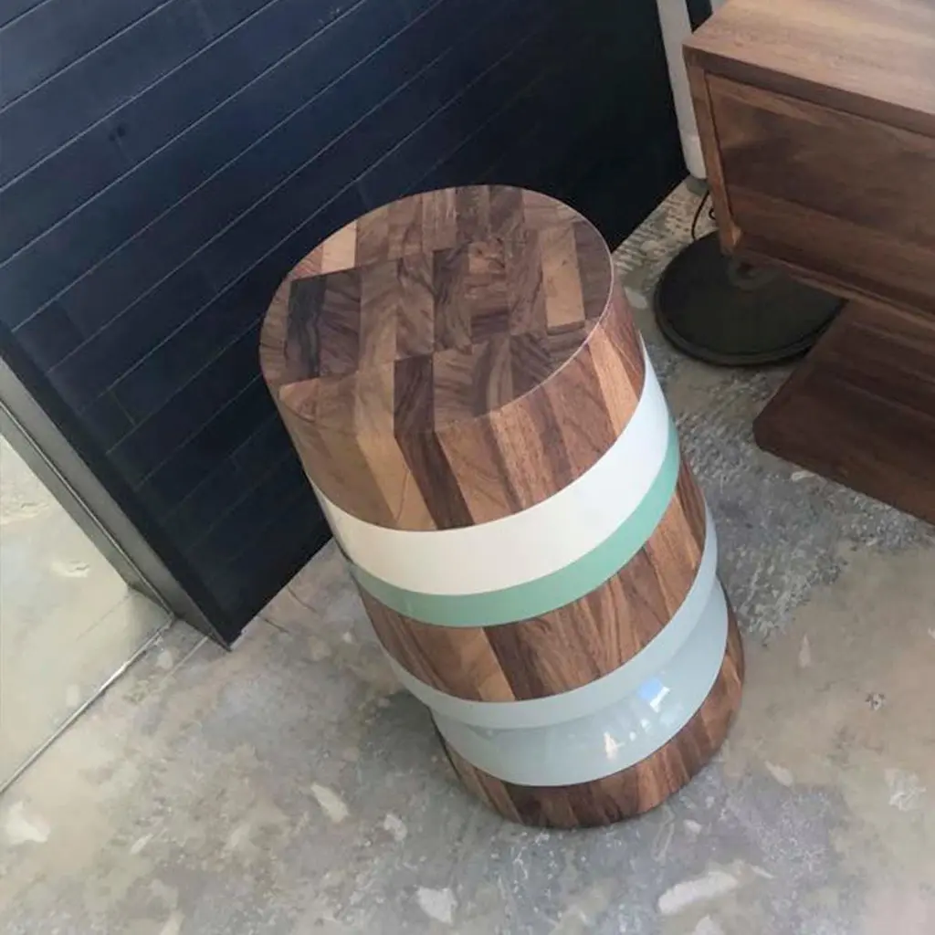 Capirucho Turned Drink Table, Conacaste Wood And Lacquered Bands By Labrica