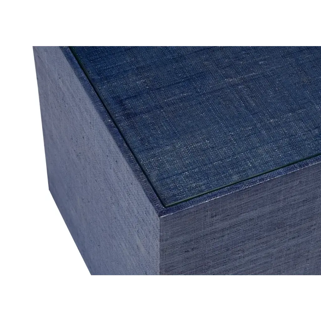 THIS IDEALLY SIZED TABLE IS LINEN WRAPPED WITH A CLEAR GLASS DROP IN TOP THAT MAKES IT EASY TO USE IN ANY SETTING. USE ALONE AS AN END TABLE OR BUNCH TOGETHER IN GROUPS OF THREE OR FOUR FOR THE PERFECT COCKTAIL TABLE. PAIR WITH 385229 TO CREATE A LARGE SHOW STOPPING SQUARE COFFEE TABLE THAT WOULD LOOK FABULOUS IN ANY INTERIOR. DESIGNED BY JAMIE MERIDA.