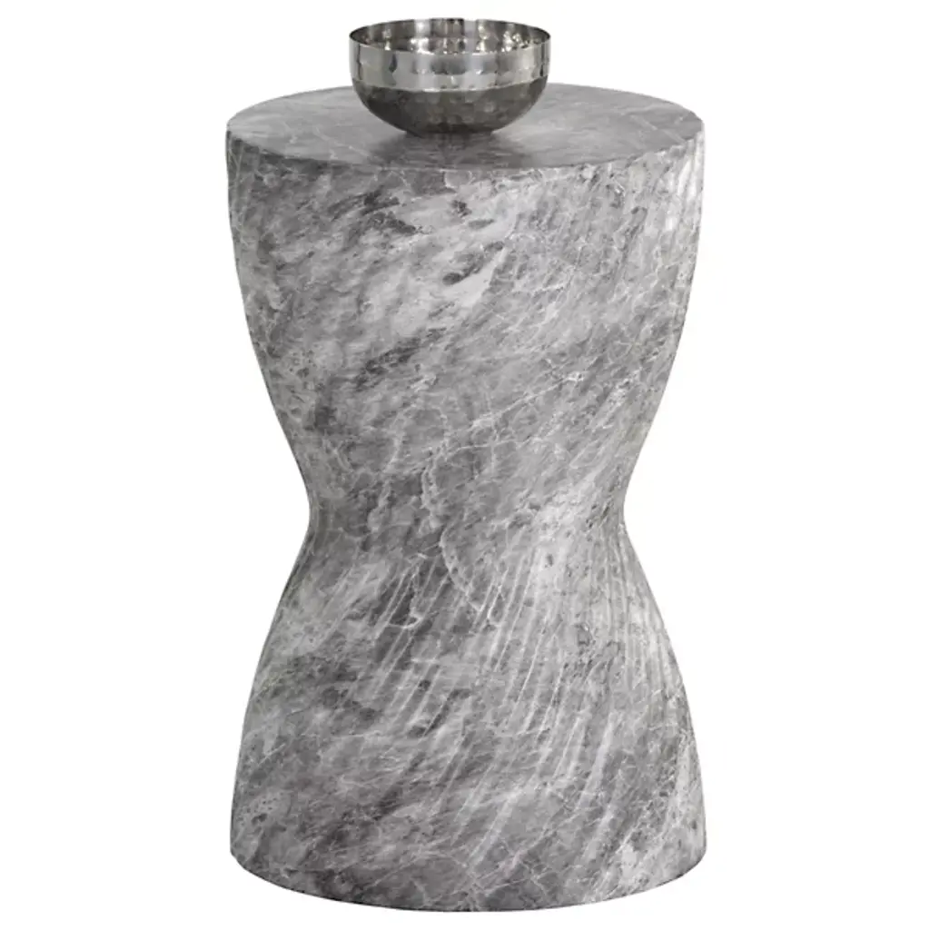 Mesmerizing concrete triumphs in the vital, versatile Cara End Table from Sunpan adding swirling sculptural appeal indoors and out. Faux grey marble textures its concrete construction, creating an intriguing and enduring weatherproof style. On a patio or porch, indoors or out, it is an eye-catching triumph of design. Its swirling base provides an artful pedestal beside seating, and its swirling organic contours make the design an articulate accent to its environment.