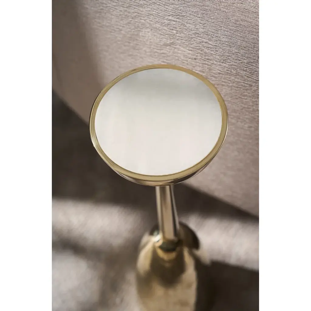 Bold and bubbly, this artful accent table delights the eye with its alluring design. A substantial, bevel-cut top in cast bubble glass adds sparkle to a reimagined, hourglass-shaped base, finished in a mix of shimmering silver leaf finishes. Captivating in form and function, it layers in light and a cool metallic, while offering the perfect place for a chilled cocktail and your favorite spy novel.