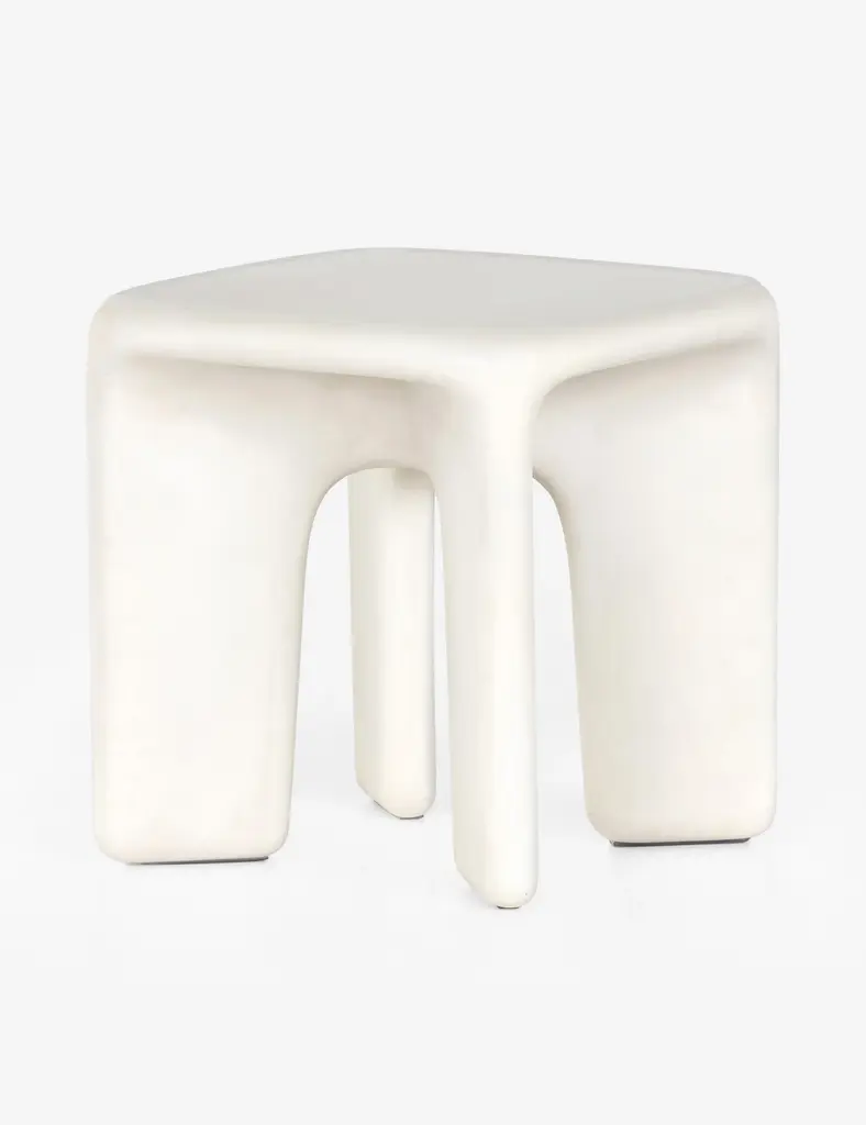 The finish and gentle, earthy lines of this side table offer up warm minimalism. Its soft, bright aspect is grounded by a polished concrete texture making it the perfect end table to use as an accent in a mostly organic space. We love it for textural contrast in a room with soft natural fibers and warm neutral tones.