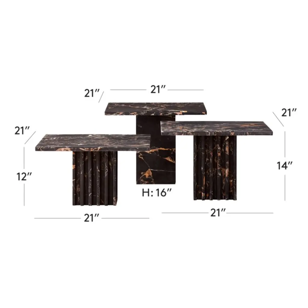 Carve 3-piece Square Black Marble Side Table Set