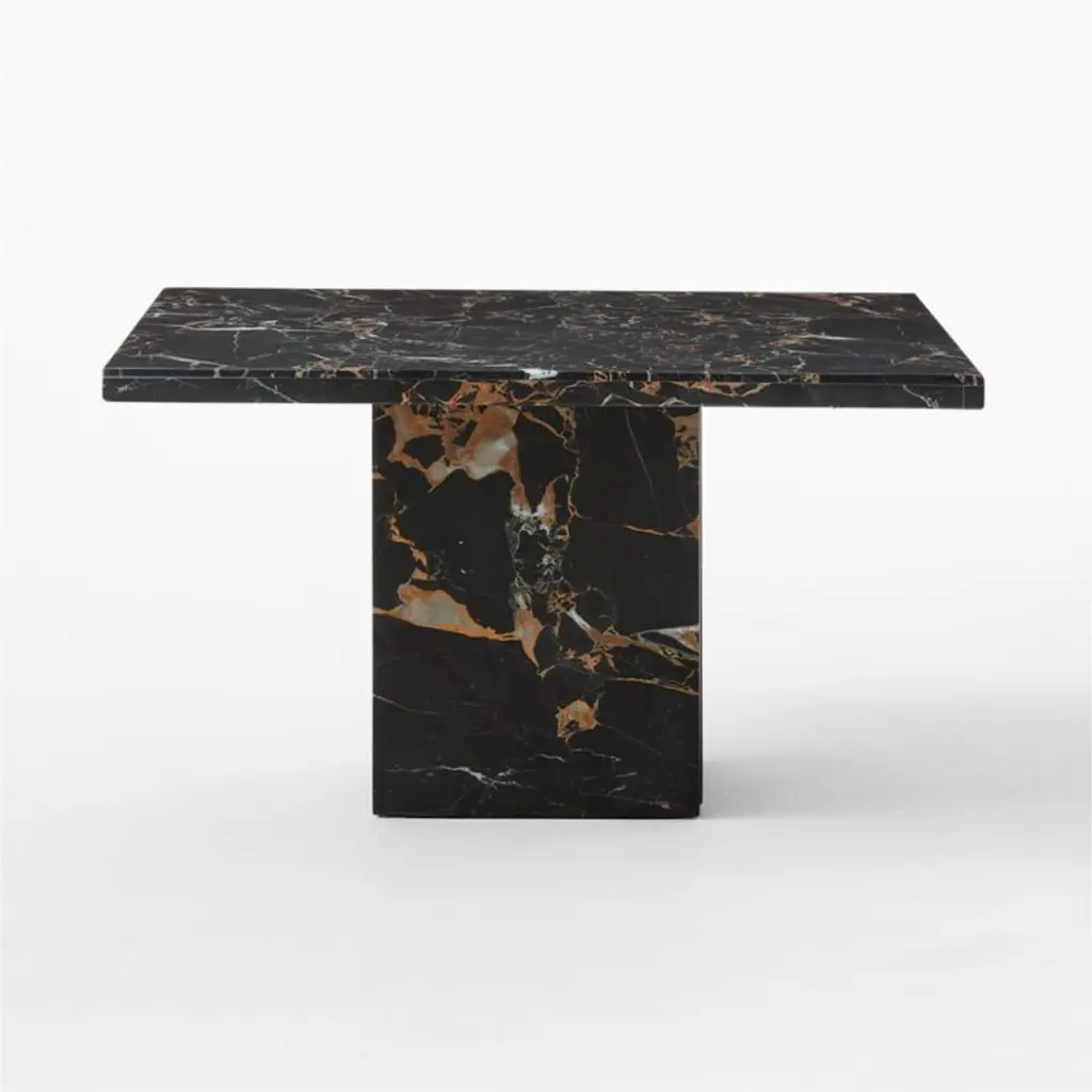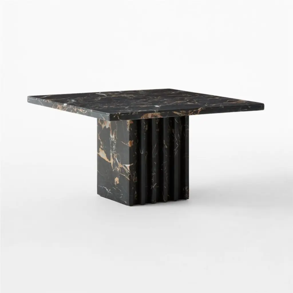 Designed by Studio ANANSI, honed black marble side table is inspired by 1970s Italian modern designs. Featuring an architectural silhouette in a style we're calling "soft brutalism." Fluted details on the base and variation in the marble add to the coveted vintage feel. CB2 exclusive.