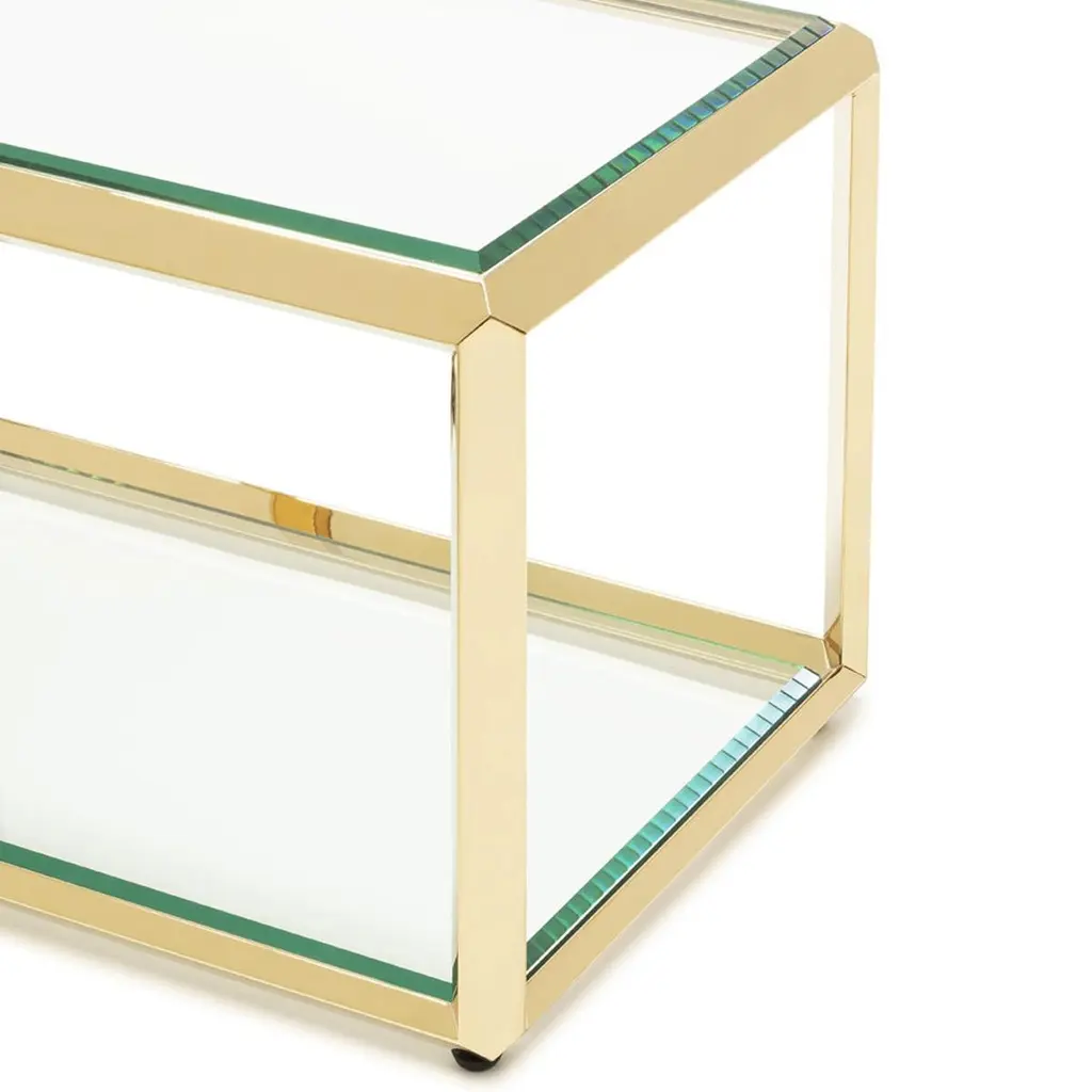 Coffee side casiopee gold with structure in gold finish,with beveled glass top up and down the coffee table.