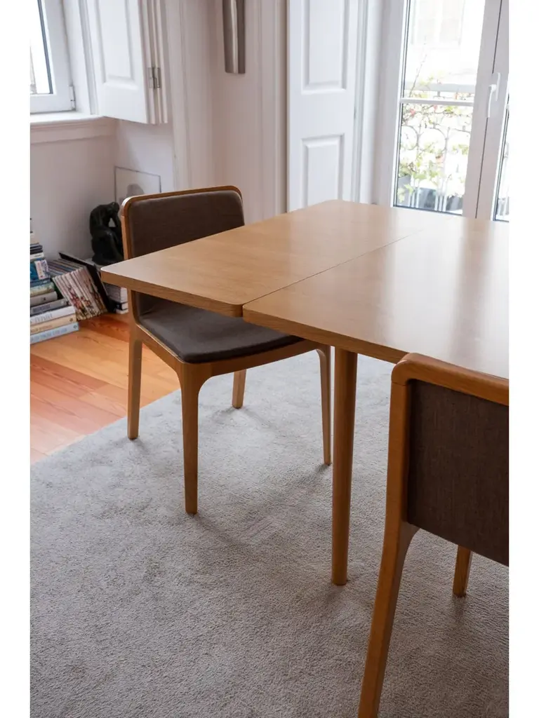 Cast extensible transform your dining space with this extendable walnut table — minimalist modern design, handcrafted in Portugal. Part of the CAST Collection, it features a 220 × 110 cm walnut top that extends by 90 cm, seating up to 10 comfortably. Its clean frame and beam-style base reflect architectural simplicity, while optional cable channels and dividers enhance versatility. Crafted from high-grade walnut with a satin-matte finish, this table blends utility and elegance in perfect balance.The CAST table has a versatile base system that can be used with a table top of any shape and size. Possible tops are round, oval, rectangular or square, some available with extensions. Due to an easy personalization of the table, it is ideal for a wide range of uses in a home or office environment. It optionally offers useful features such as a cable storage solution for an exquisite office meeting table. CAST tables are available in ash, oak and walnut and on request it is possible to customize this product regarding materials, dimensions or other.