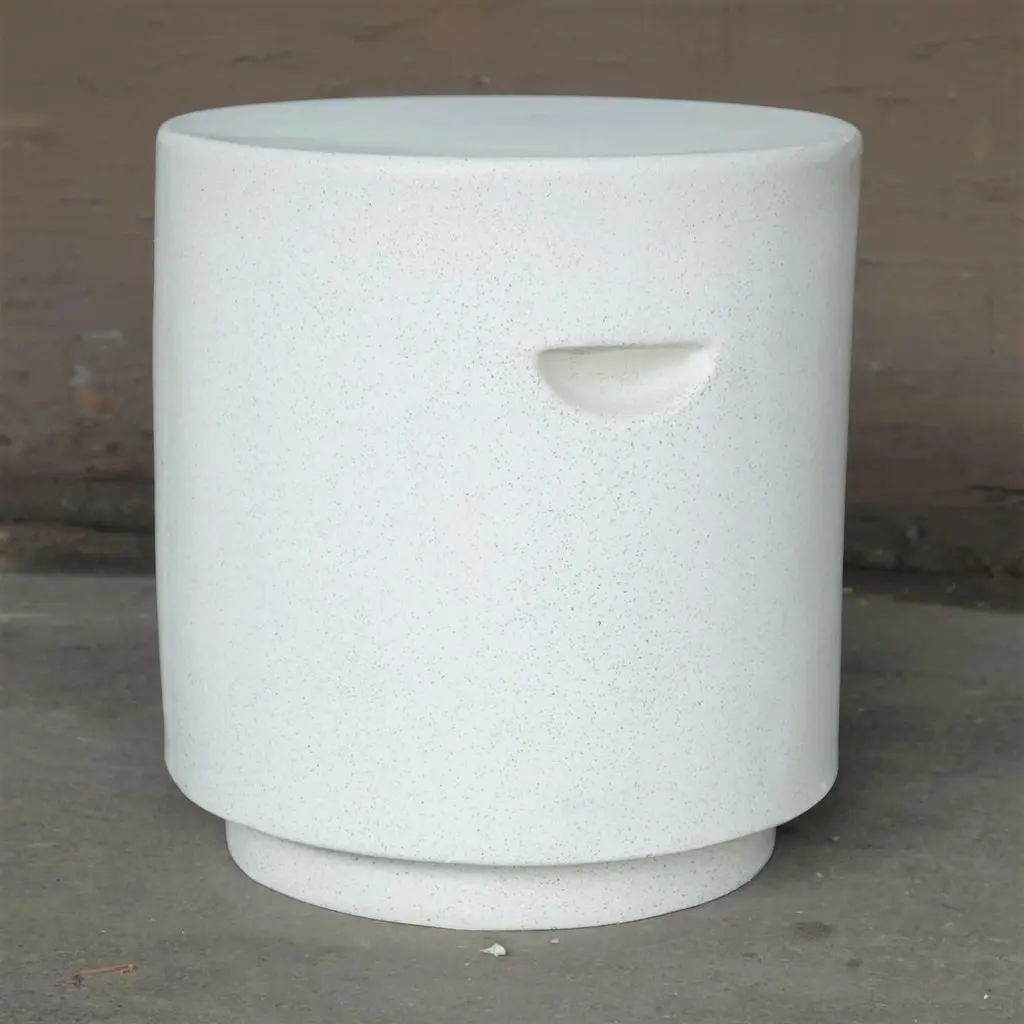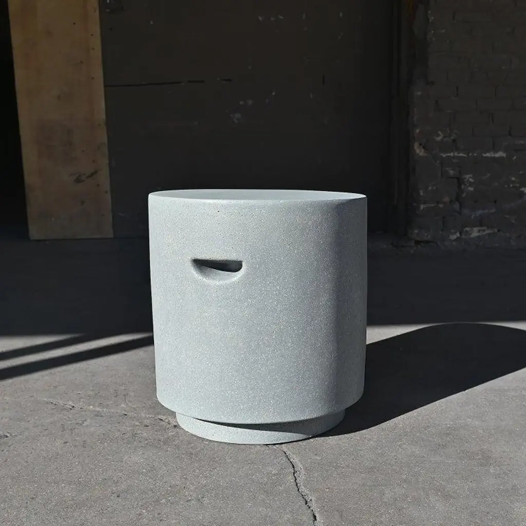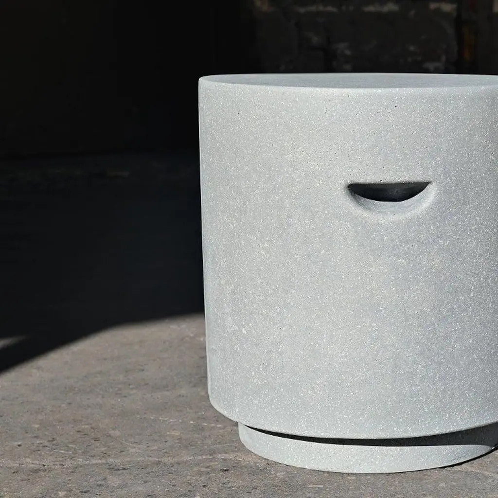 A classic form with an inviting, functional twist. Minimalist, inline depressions invite movement of the piece and reveal its secretive weightlessness.Dimensions: Diameter 17 in. (43 cm). Height 18 in. (46 cm). Weight 15 lbs. (7 kg)Materials: resin, stone aggregate, fiberglass.Durable and designed to be used outdoors in all seasons and in residential or hospitality environments.Designed by: Zachary BitnerMade-to-order in Chicago, Illinois.About Zachary A. Design:Founded by Zac Bitner, Zachary A. Design is a furniture brand based in Chicago. The team combines an approachable art sensibility with a deep expertise of the materials. With a focus on the unexpected, they push the boundaries of material finish and refine age-old production techniques to be used in modern, artful furniture designs. Each piece is hand-cast in Chicago. The furniture is designed to be used indoors and outdoors in all seasons.