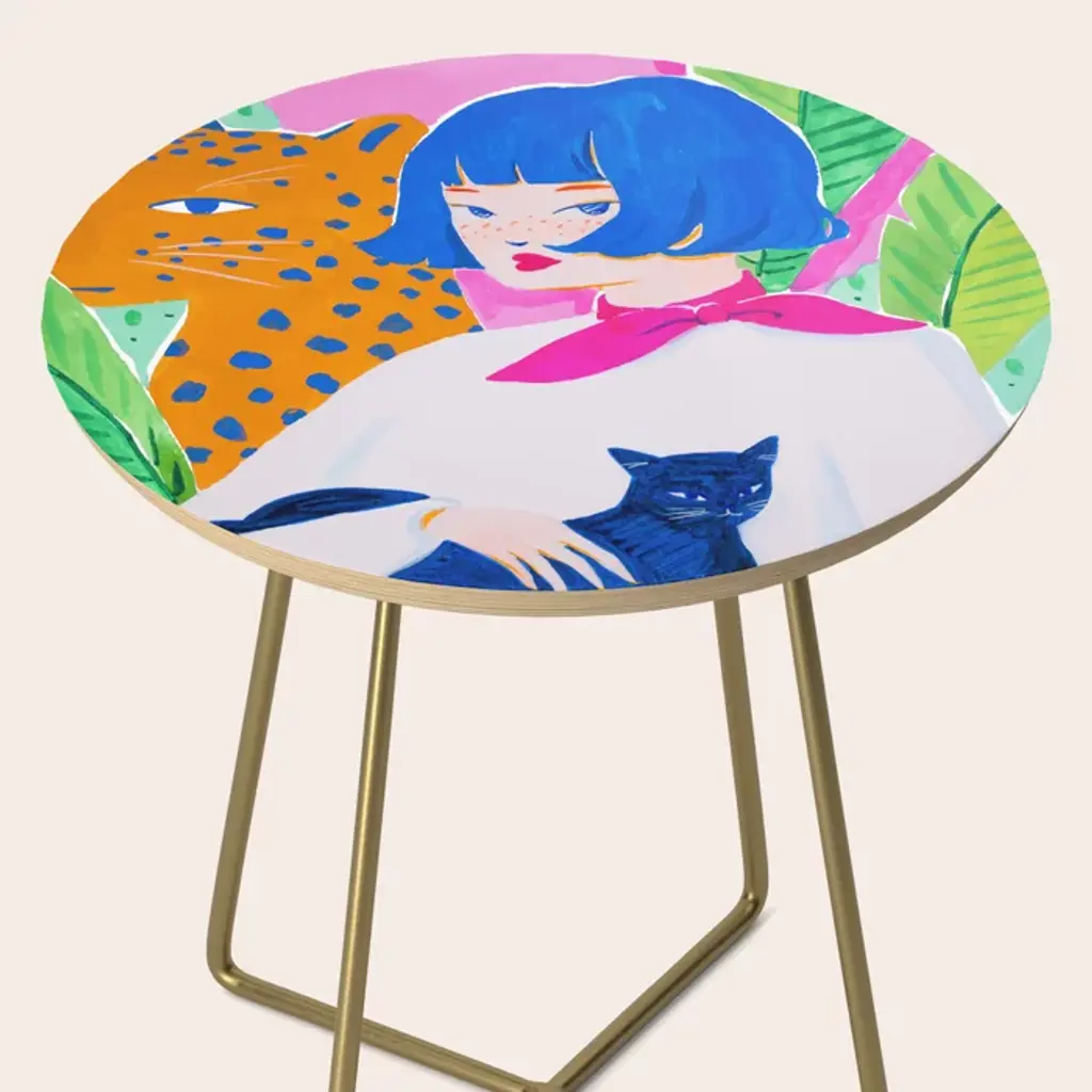 From sideshow to show-stopper, our side tables will be a stunning modern accent to your space. Selecting from our wide array of artist's designs printed with a satin finish on birch wood, you’ll take any room from zero to a hundred. Available in a square or round table top, and black or gold leg colors.Square: 19" x 19" x 19" (H)Round: 19" (diameter) x 19" (H)Baltic birch table top with beveled edgeHigh quality print with satin finishSteel legs available in black or goldAssembly requiredFor more info click here.SHIPPING: Items are made to order and typically ship within 3-4 business days. Click here for more information about delivery options.Furniture sales are final. Click here for more information on returns.