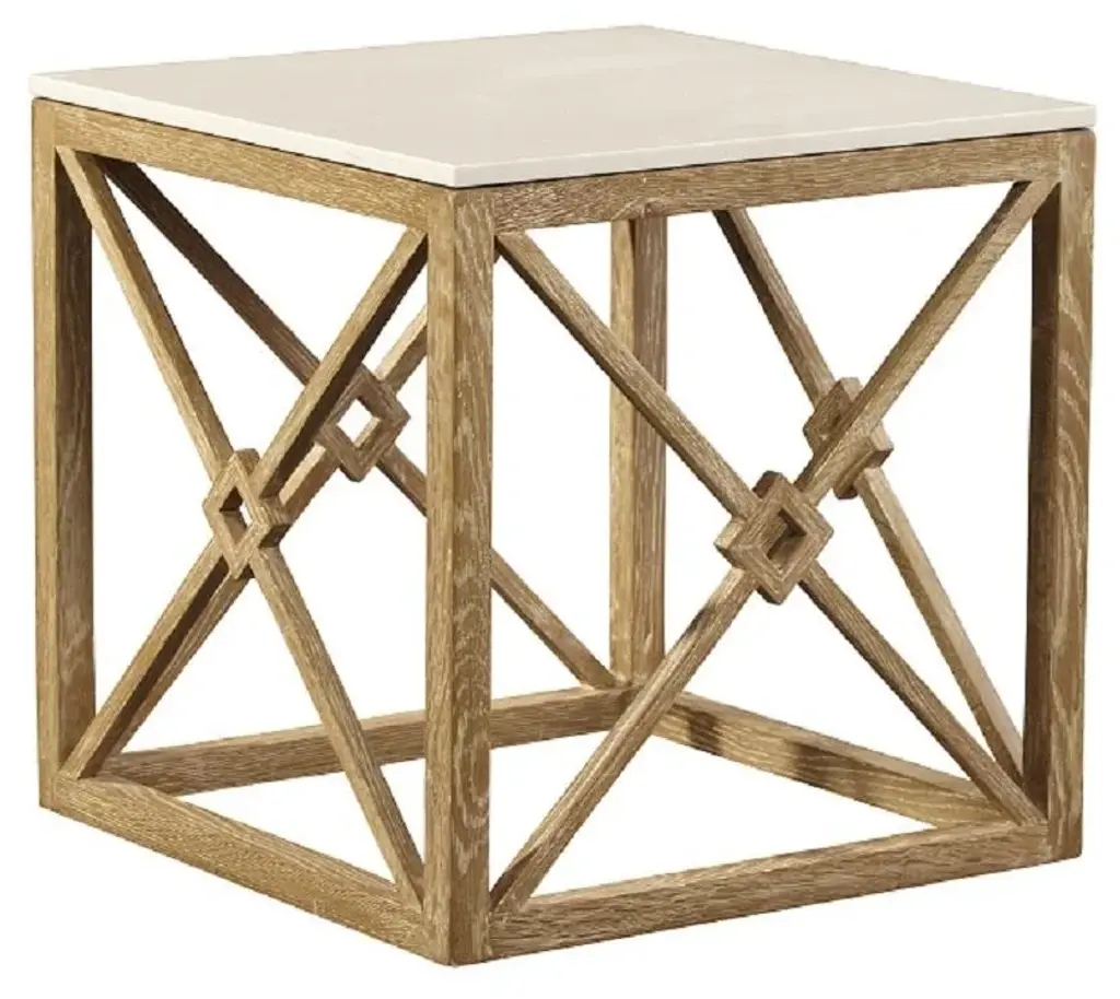 Handcrafted From Solid Mixed Woods With An Natural Ivory Limestone Top, On A Geometric Base Finished In A Warm Oatmeal Wash. True To The Characteristics Of Natural Stone, Each Piece Will Have Unique Shading And Graining.