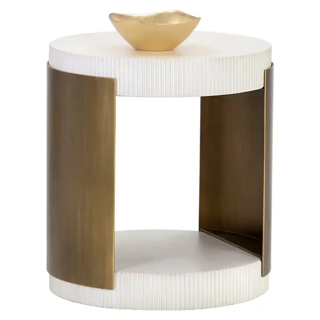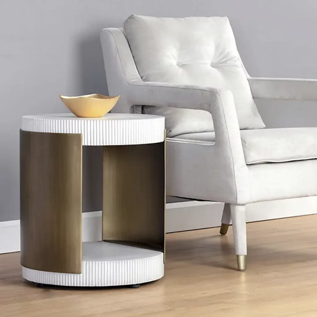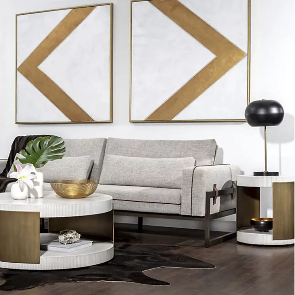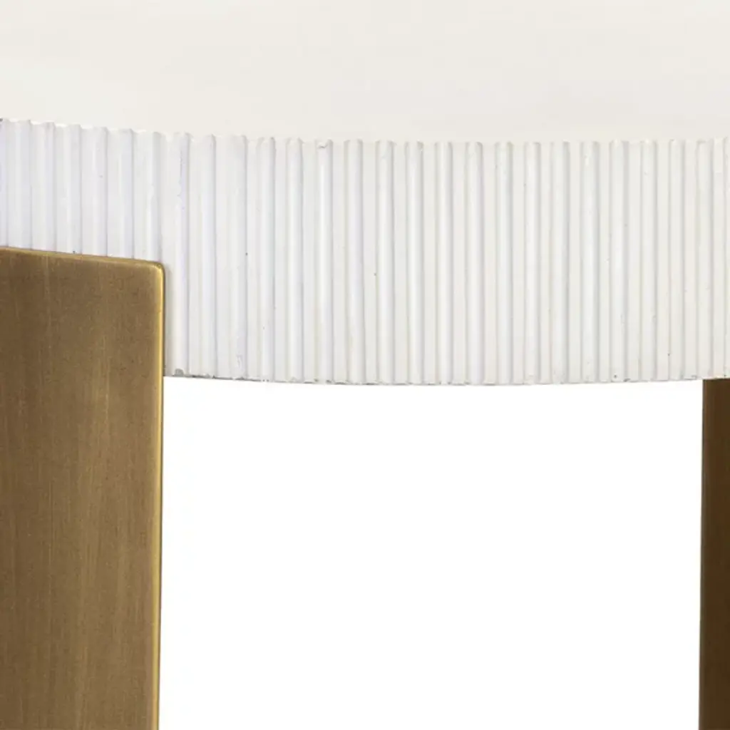 The Cavette Outdoor End Table from Sunpan pairs traditional craftsmanship with modern materials. Its thick concrete top and bottom shelves rest on a powder-coated steel frame. An acrylic coating protects against rain and moisture. The ridged surface adds depth to the piece while maintaining clean lines. The galvanized steel components resist corrosion in outdoor settings. This table bridges the gap between indoor sophistication and outdoor toughness.