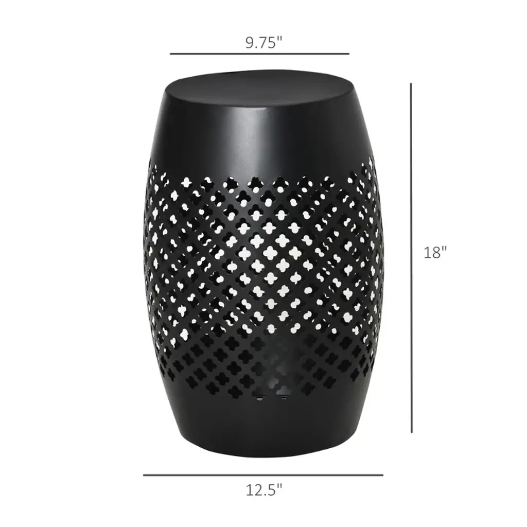 Cavinas 12.5" Steel Patio End Table,bohemian Drum-style Outdoor Side Table,round Hollow Accent Table For Indoor/outdoor Use,black
