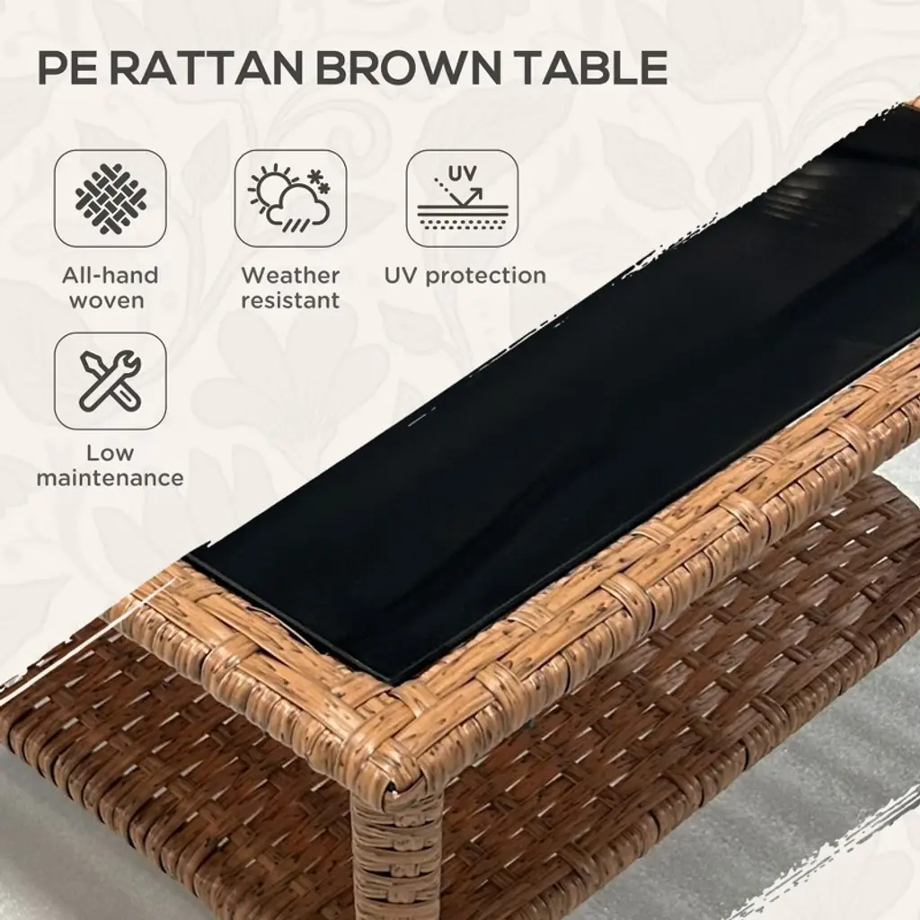 Cavinas 21.7" Wicker Rattan Woven Patio Side Table,2-tier Outdoor End Table With Glass Top For Garden,poolside&porch,outdoor Furniture,black/brown